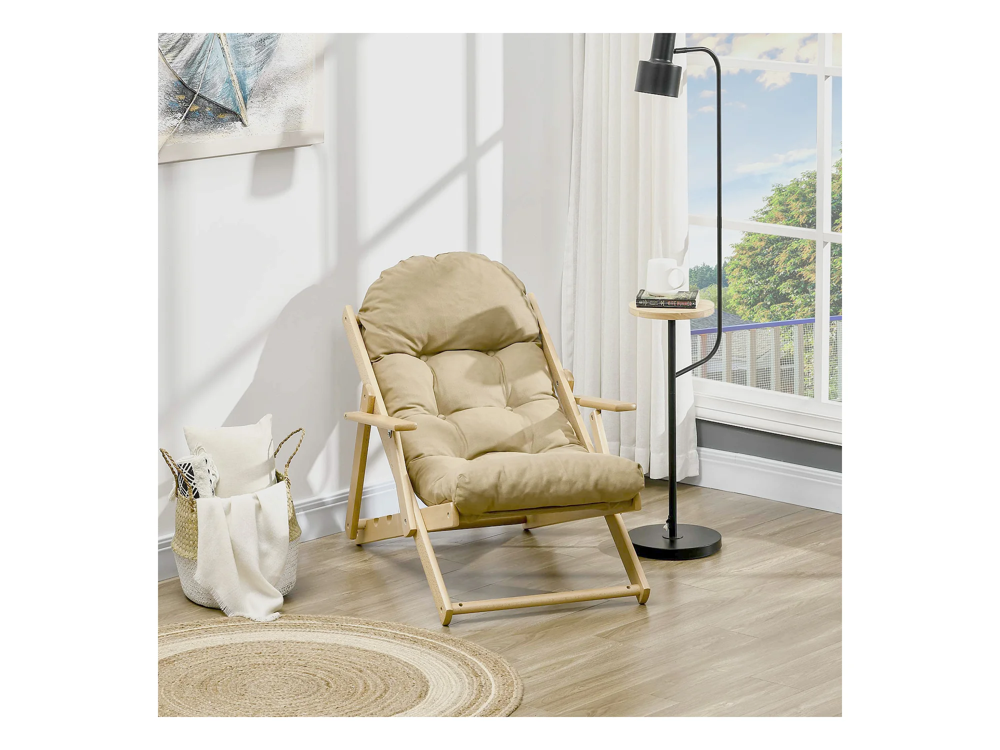 Fauteuil chaise pliable et inclinable en bois grand confort avec coussin capitonné épais - dim. 71I x 89P x 96H cm - beige