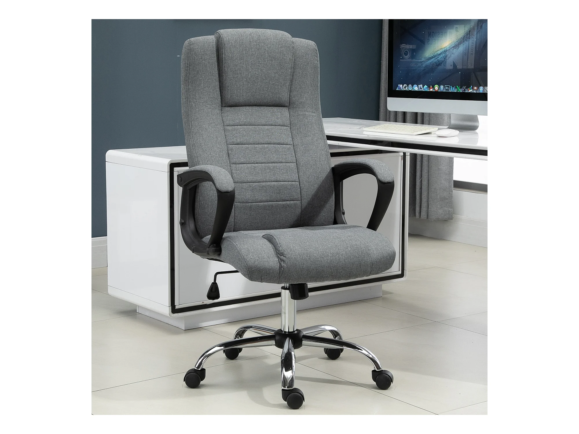 Vinsetto Fauteuil de bureau direction ergonomique hauteur réglable dossier inclinable toile de lin gris chiné
