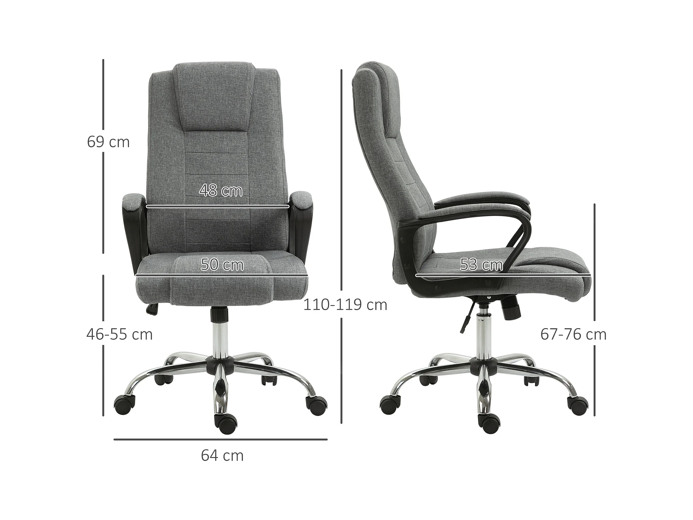 Vinsetto Fauteuil bureau manager massant pivotant hauteur réglable tissu lin gris