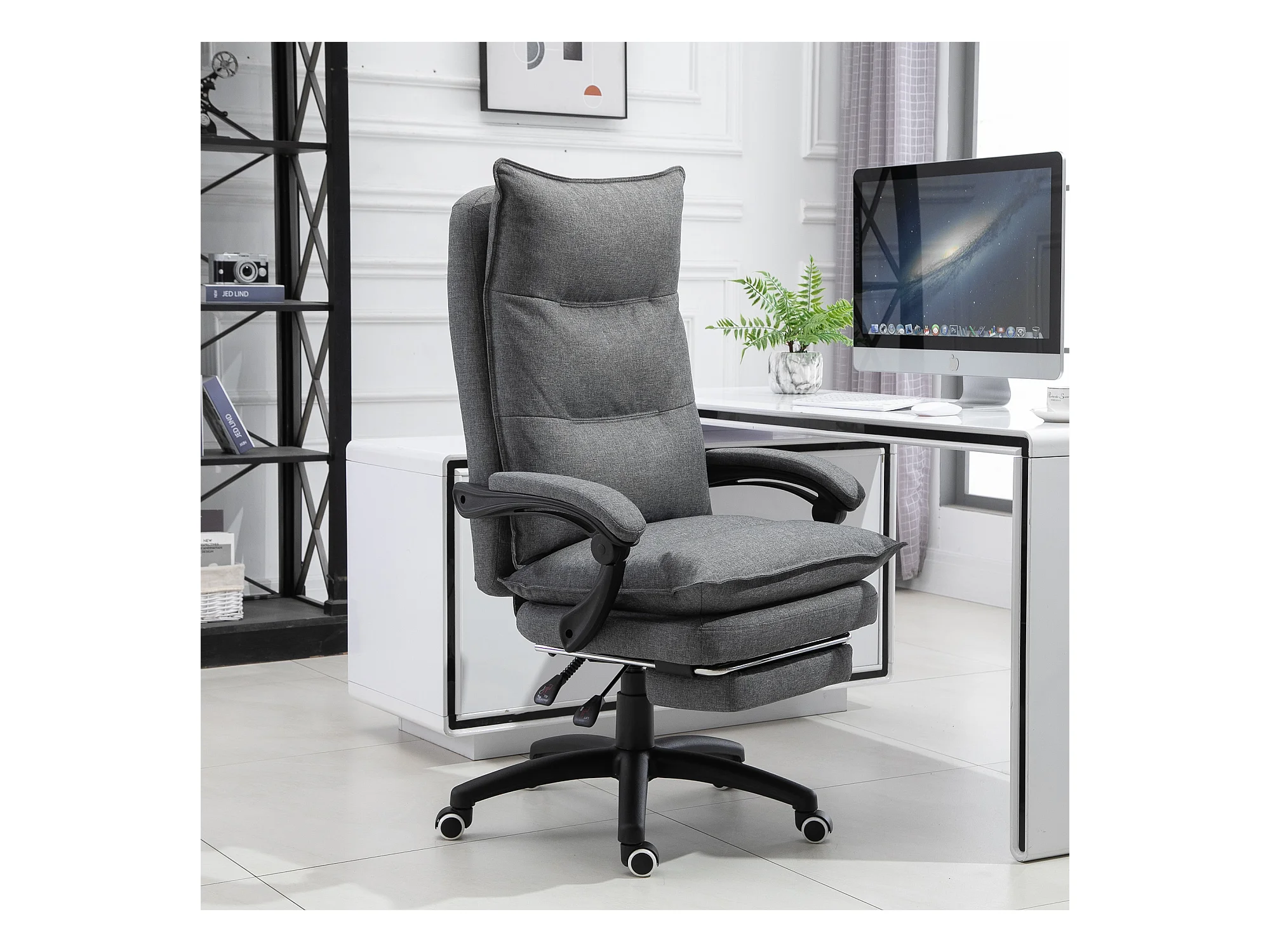 HOMCOM Fauteuil de bureau à roulettes chaise manager ergonomique pivotante hauteur réglable lin gris foncé