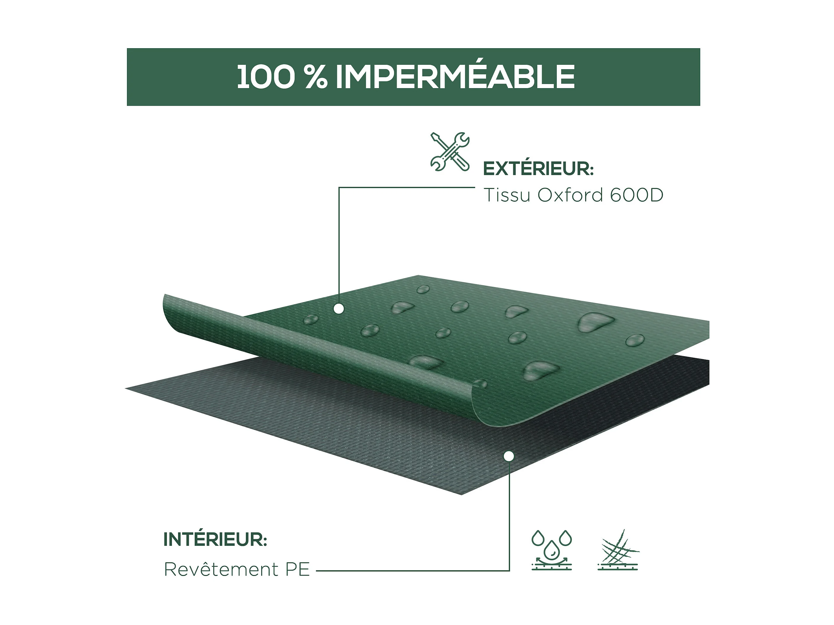 Housse de protection etanche pour meuble salon de jardin rectangulaire 135L x 135l x 75H cm vert