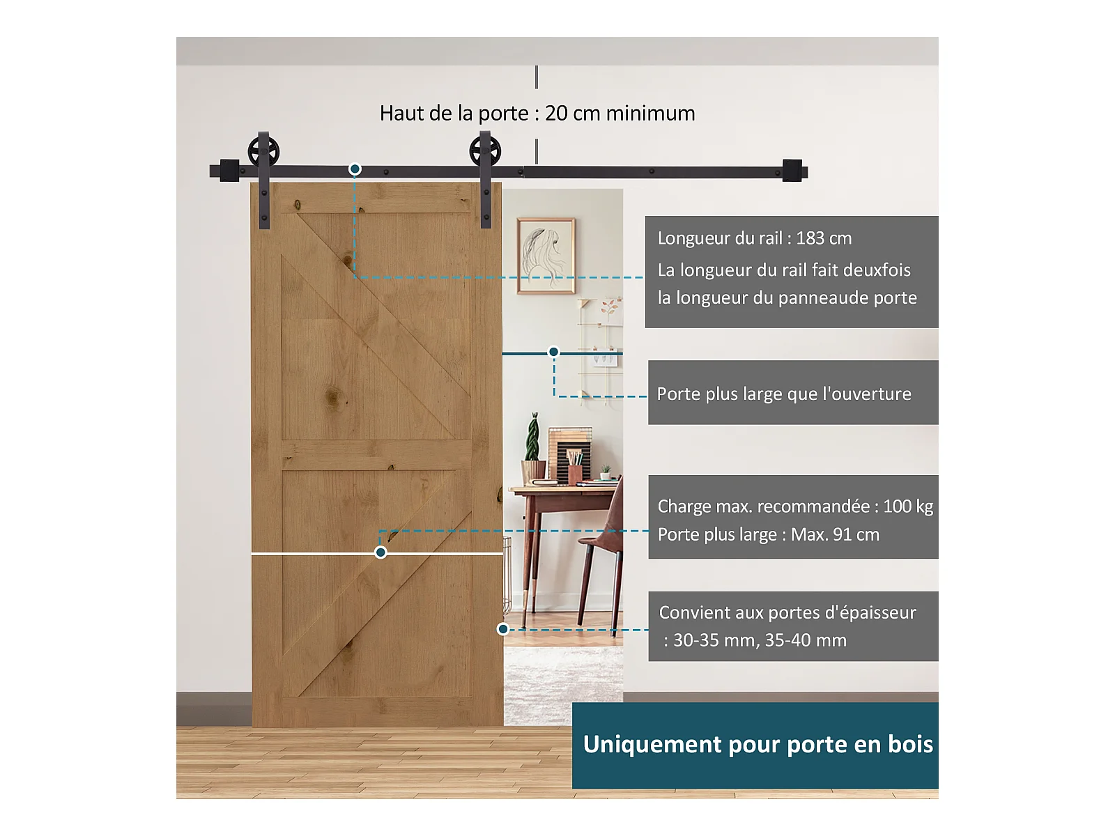 Kit de porte coulissante système galandage pour porte épaisseur 35-45 ou 40-45 mm longueur rail 1,83 m charge max. 100 Kg acier brun