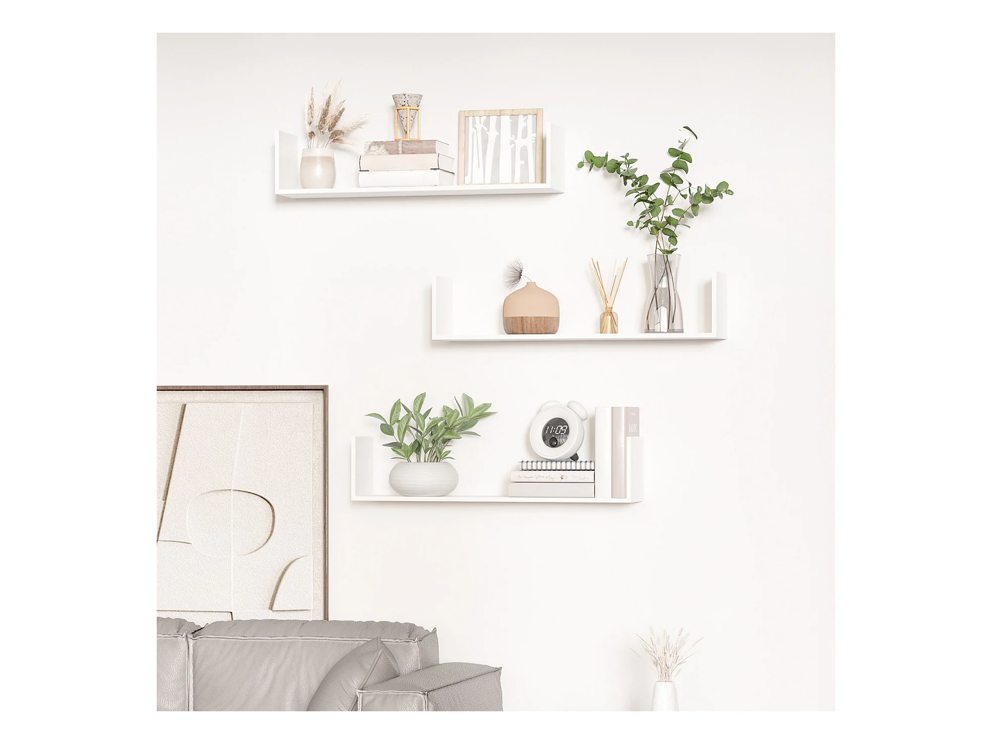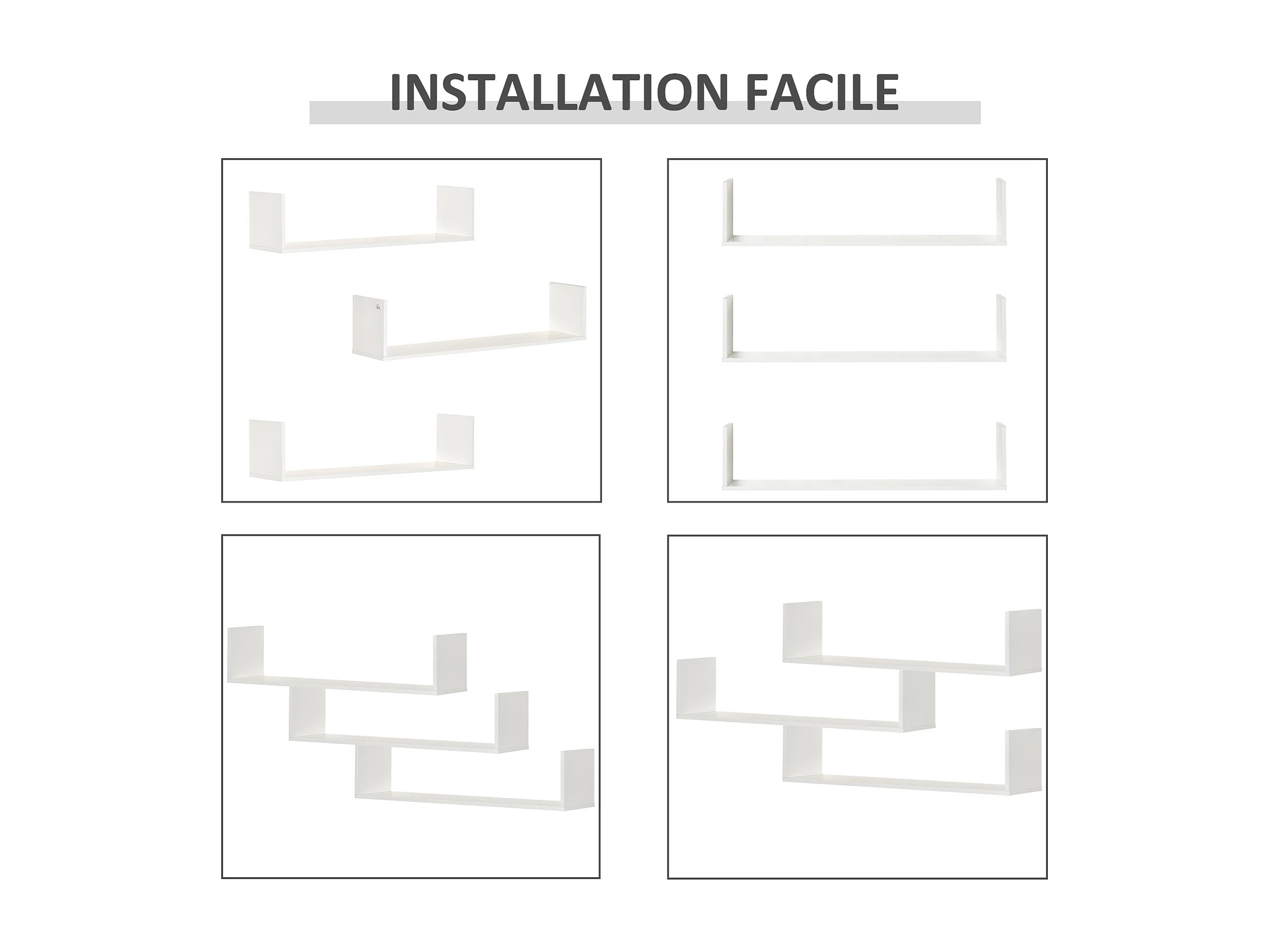 Lot de 3 Étagères murales flottantes coloris Blanc Fixations invisibles
