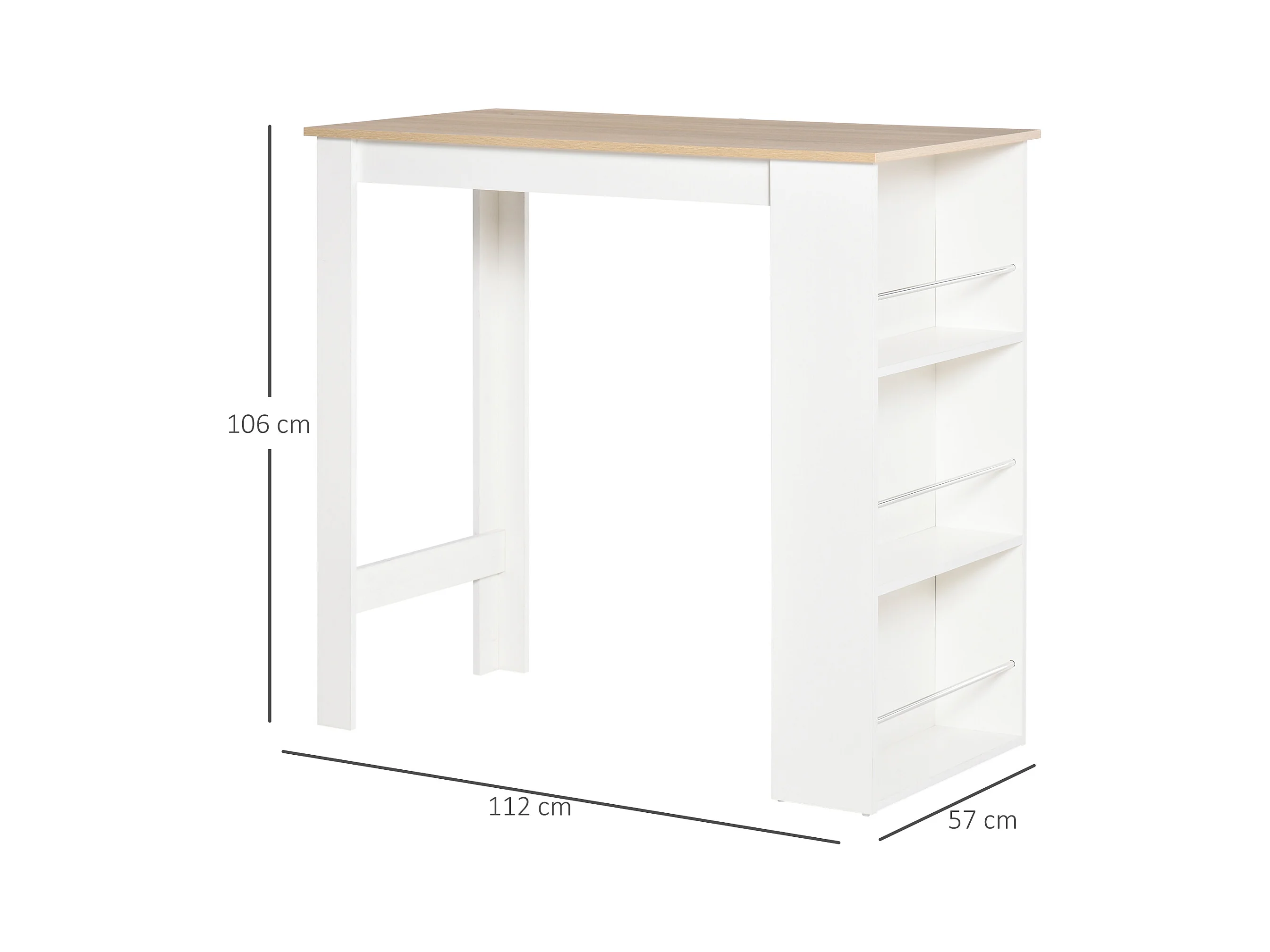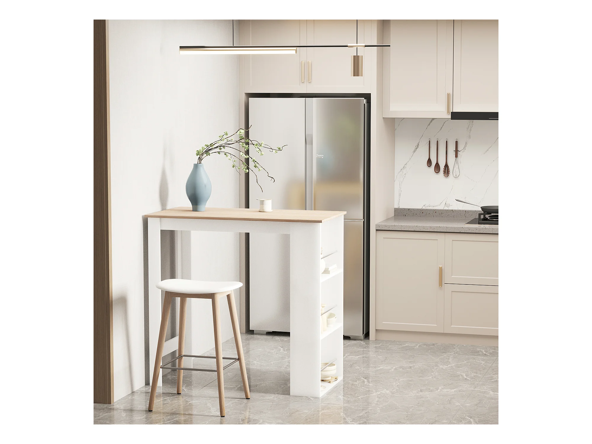 Table de bar table haute de cuisine mange-debout comptoir - 3 étagères - aspect chêne clair blanc