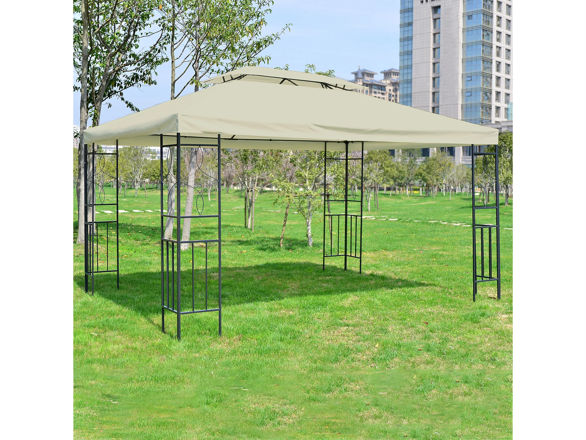 HOMCOM Tonnelle Pavillon de jardin barnum style colonial double toit 4 x 3 m acier crème