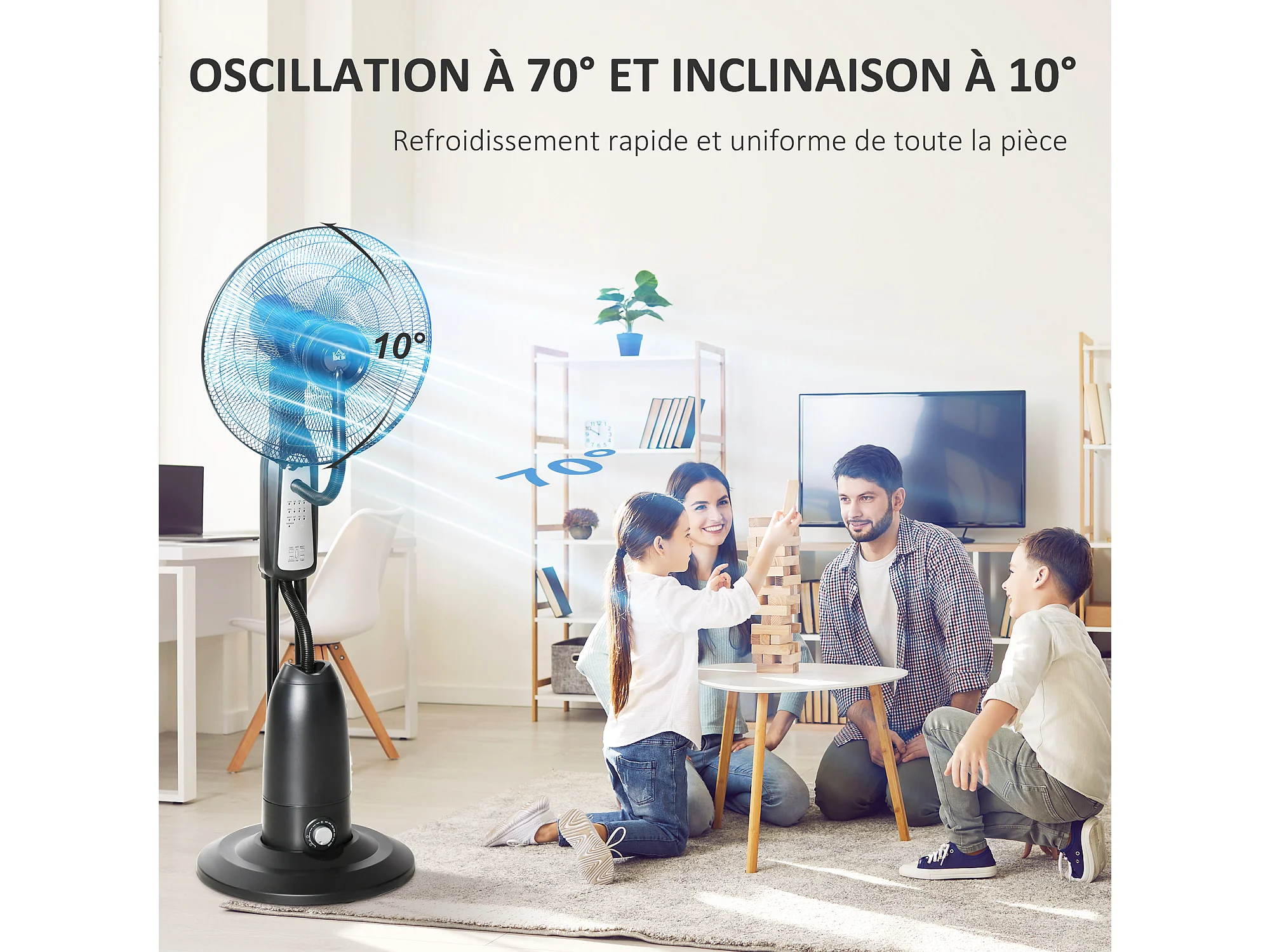 HOMCOM Ventilateur brumisateur sur roulettes - oscillant, inclinable silencieux 90 W avec télécommande - timer 3 modes 3 vitesses - gris noir
