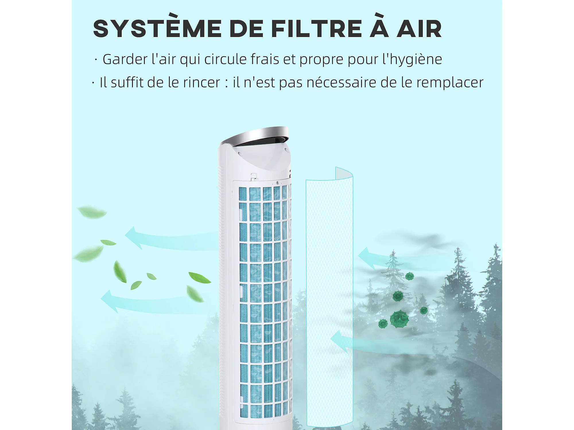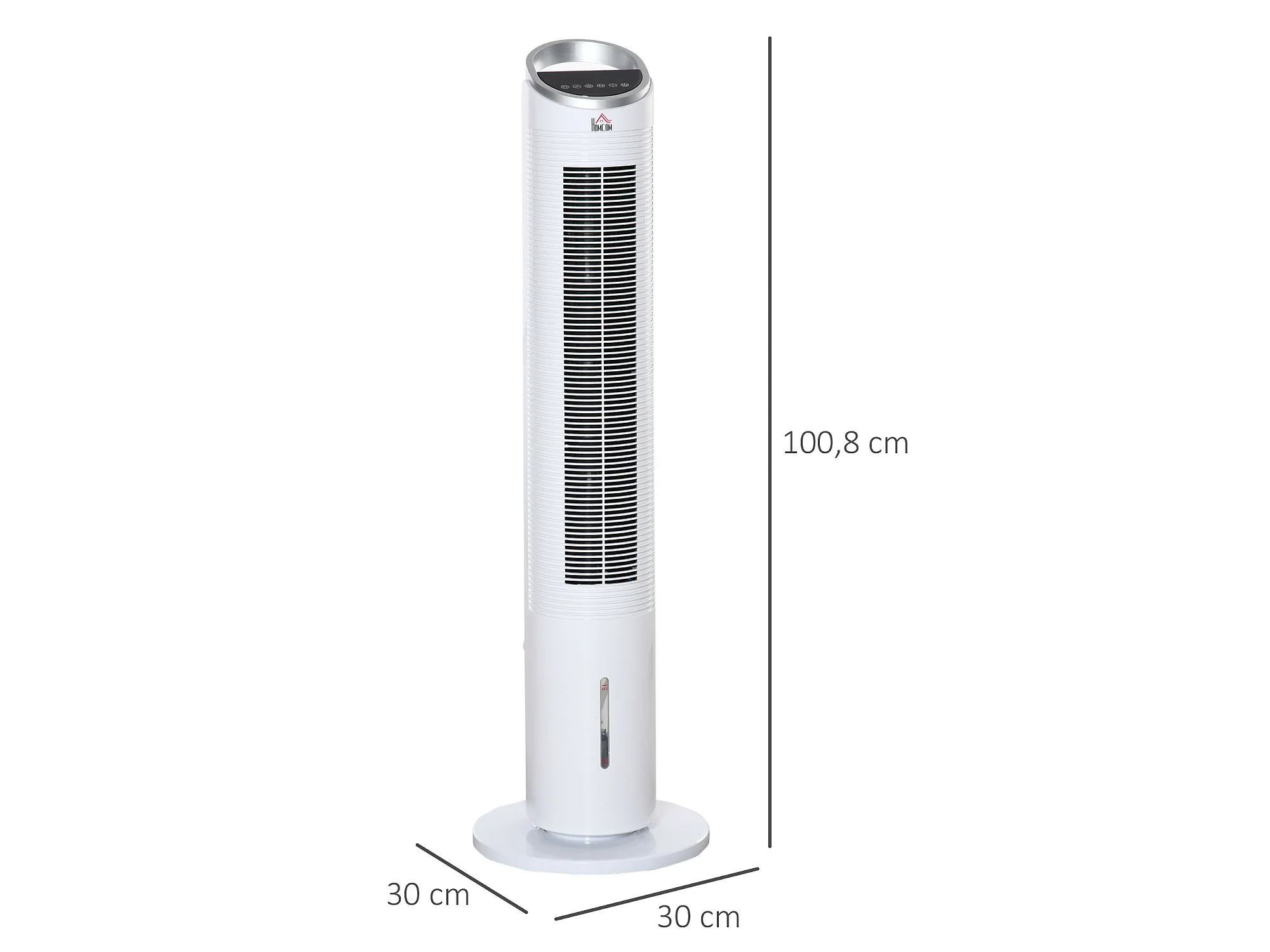 HOMCOM Ventilateur colonne rafraichieur d'air humidificateur 3 en 1 - puiance 60 W - ocillant, ilencieux - timer, 3 mode, 3 vitee - télécommande inclue - blanc
