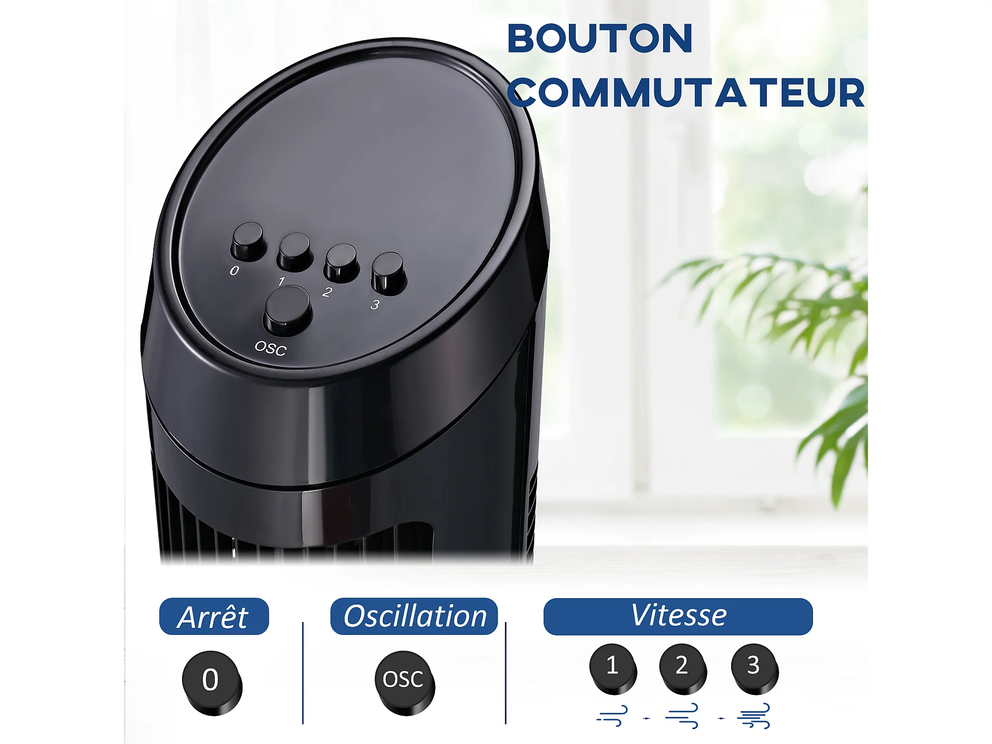 HOMCOM Ventilateur colonne tour oscillant silencieux 45 W 3 vitesses 27L x 27l x 75H cm noir