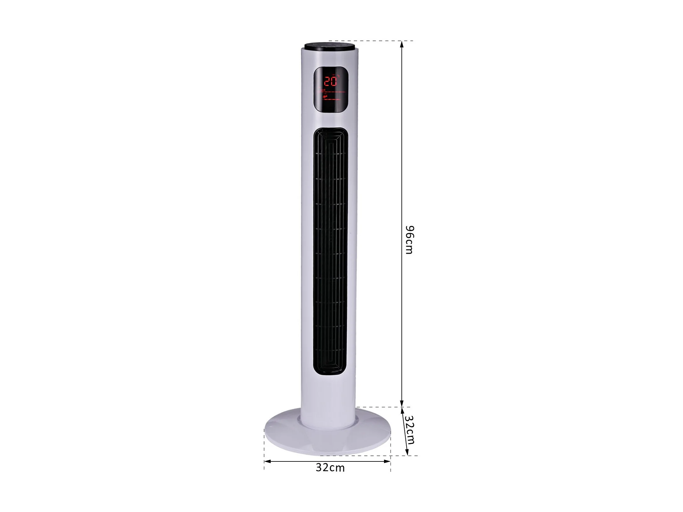 Ventilateur colonne tour programmable oscillant silencieux 45 W avec télécommande écran affichage minuterie 3 modes 3 vitesses 32L x 32l x 96H cm blanc noir