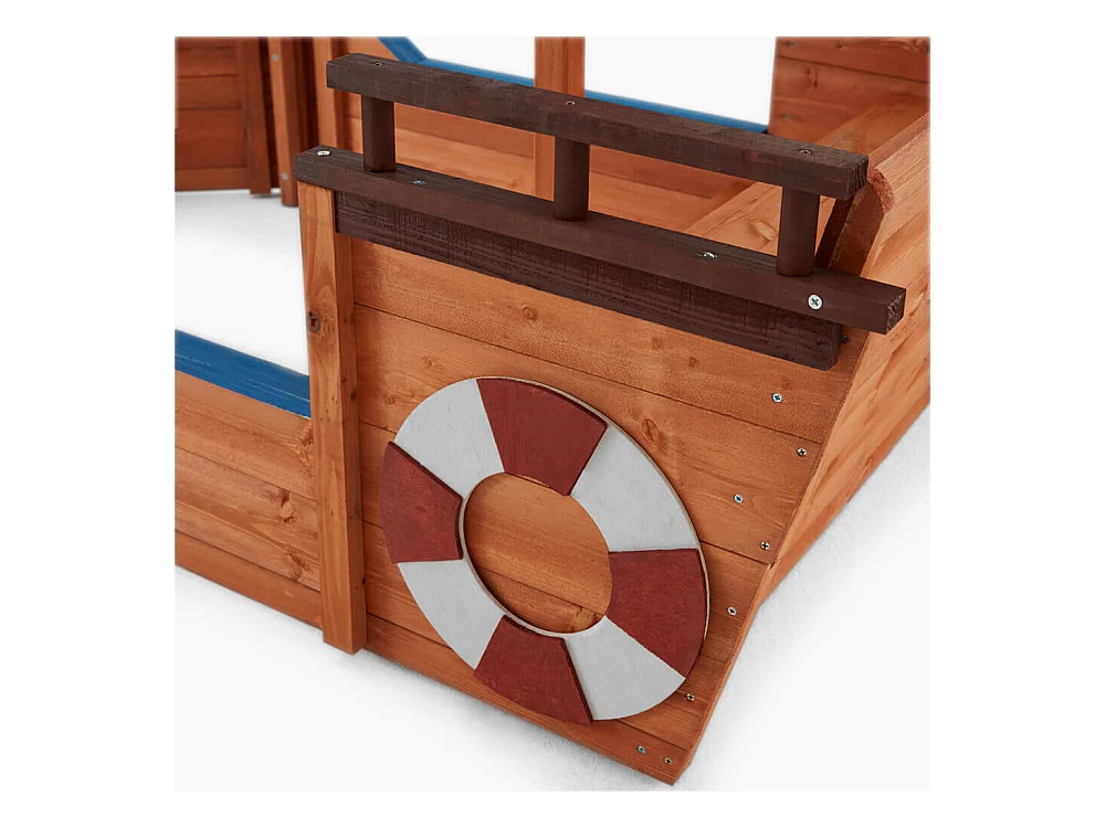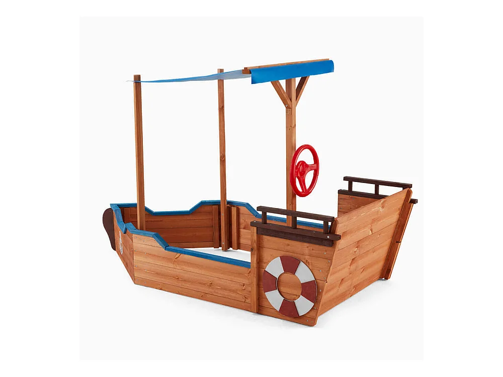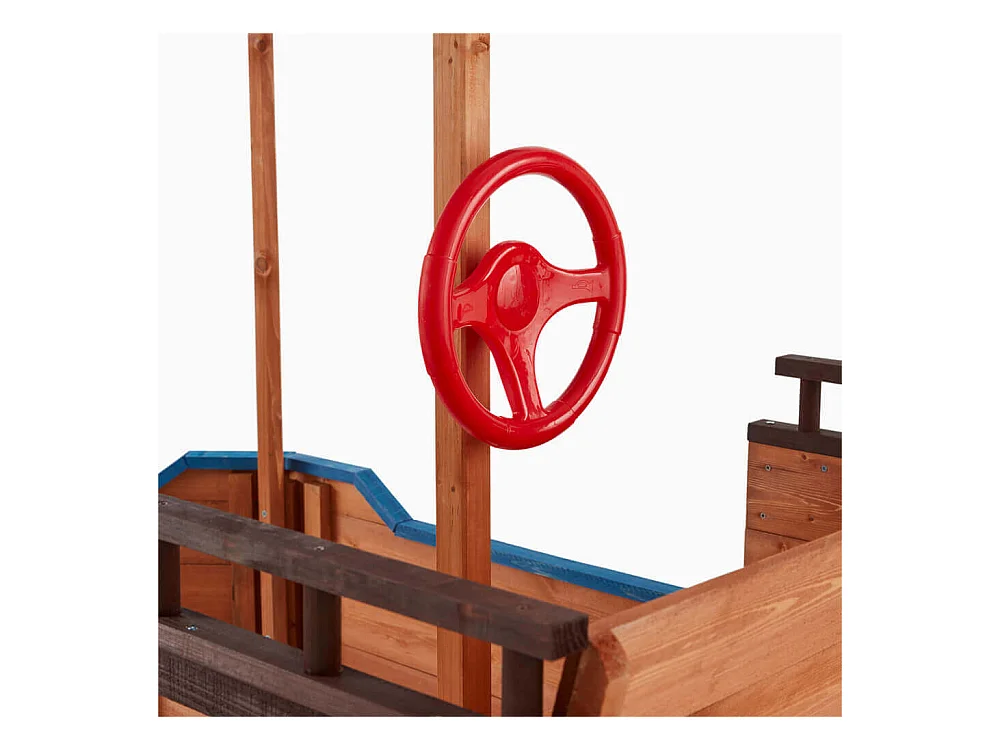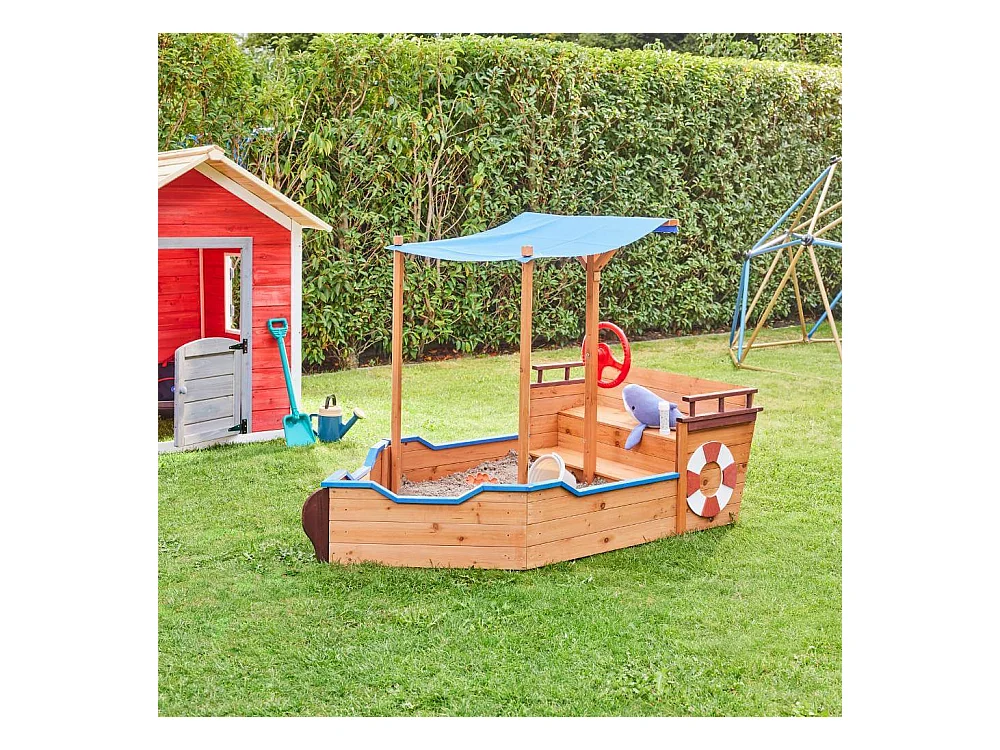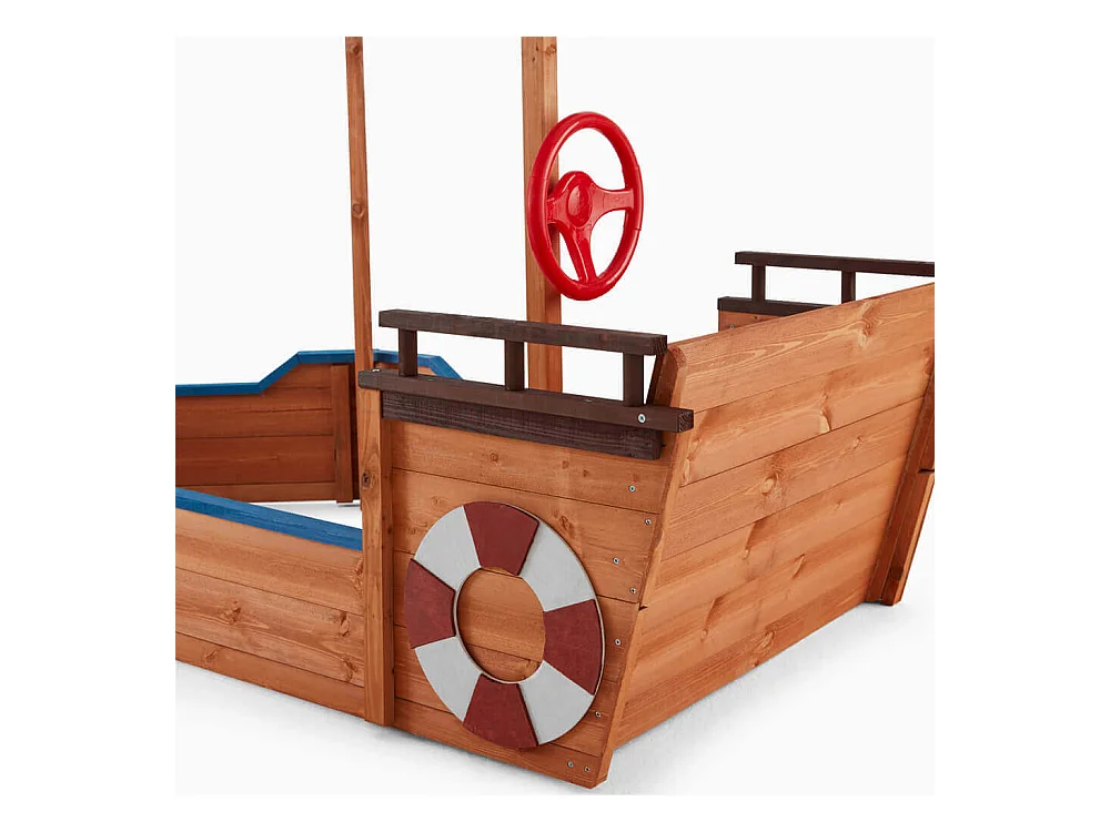 Bac à sable bateau de pirate - banc, coffre rangement, gouvernail, drapeau, bâche - bois sapin pré-huilé