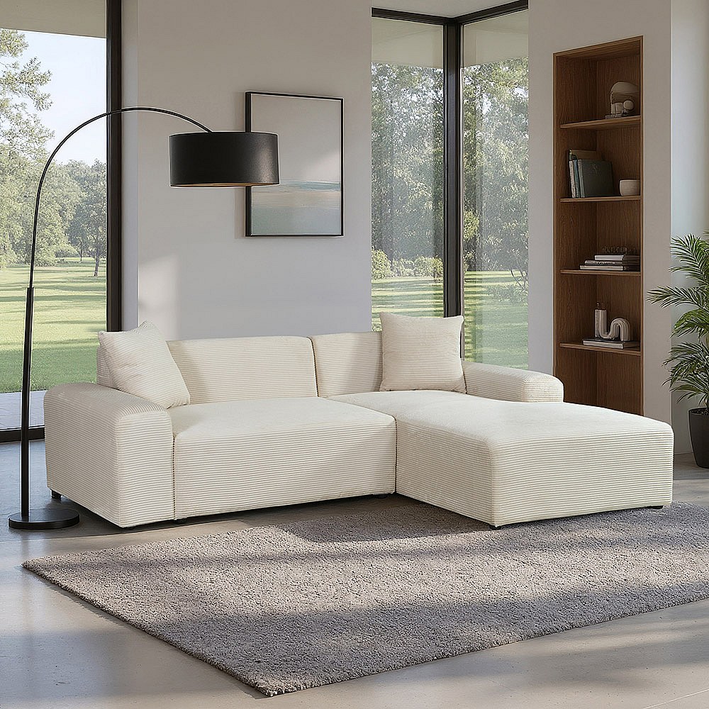 Home Deluxe Canapé d'angle AMELIO Cord - Beige Droite - 240 x 178 cm