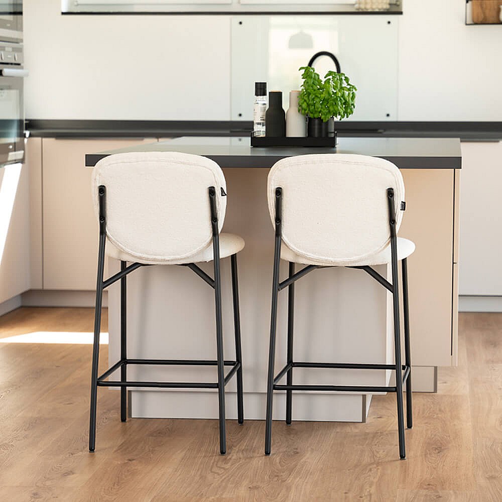 Home Deluxe CELDA velours bouclé - set de 2 chaises blanches | Chaises de bar