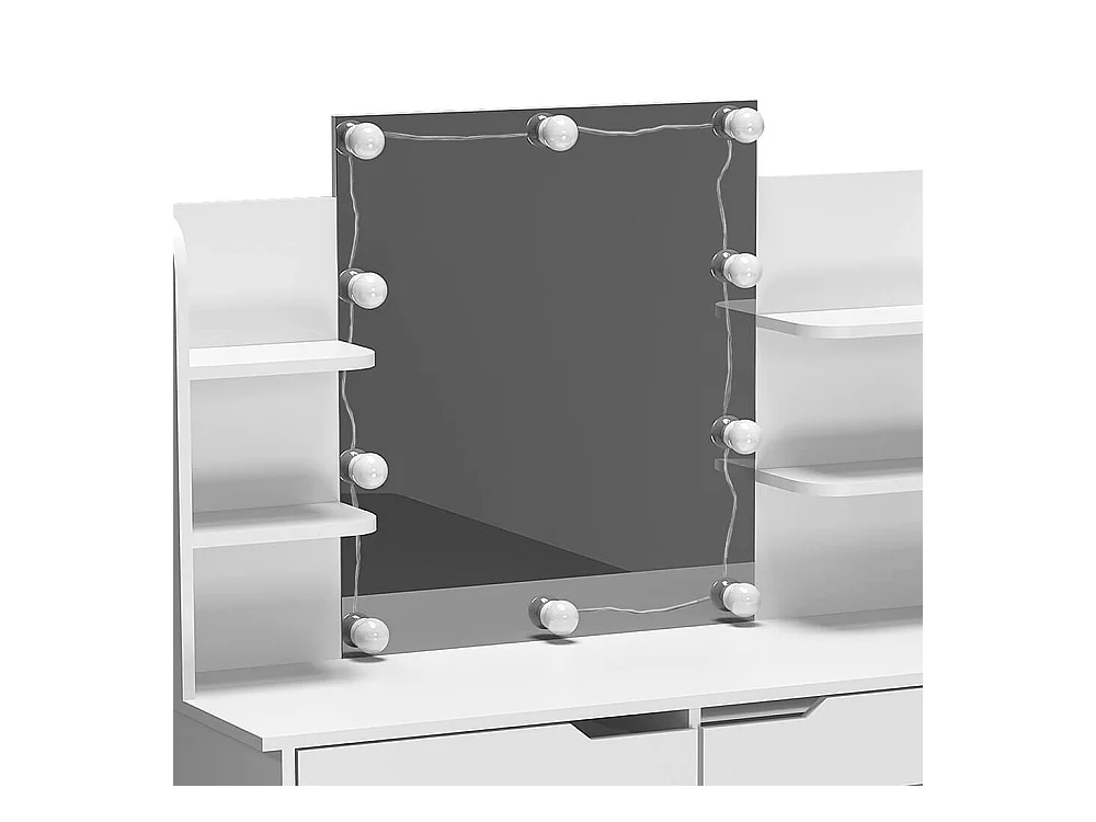 Coiffeuse avec miroir et tabouret CAEN LED Blanc