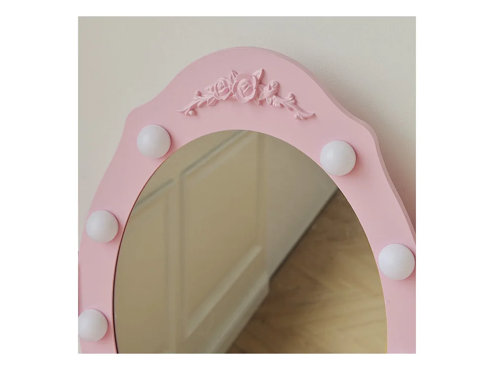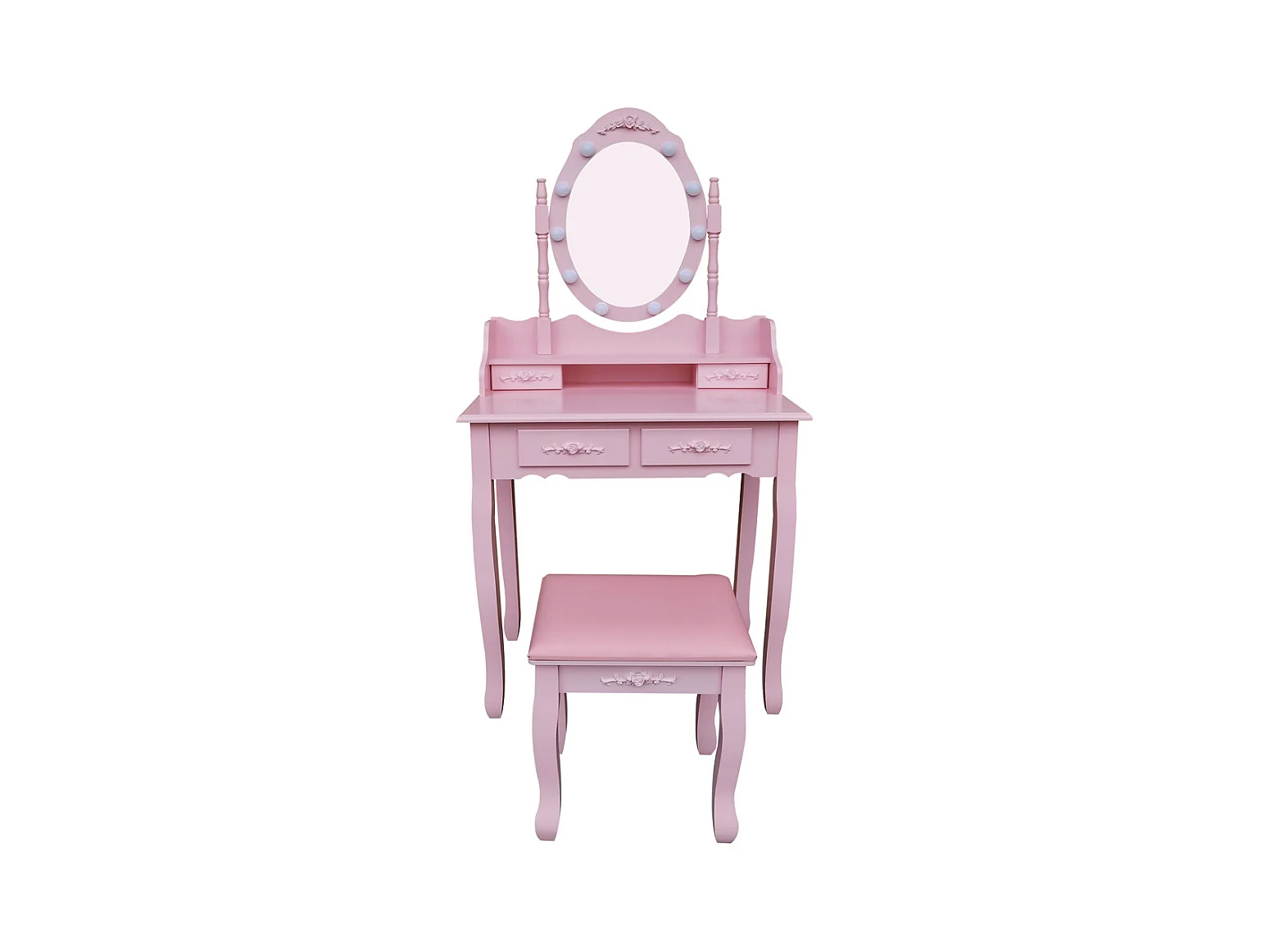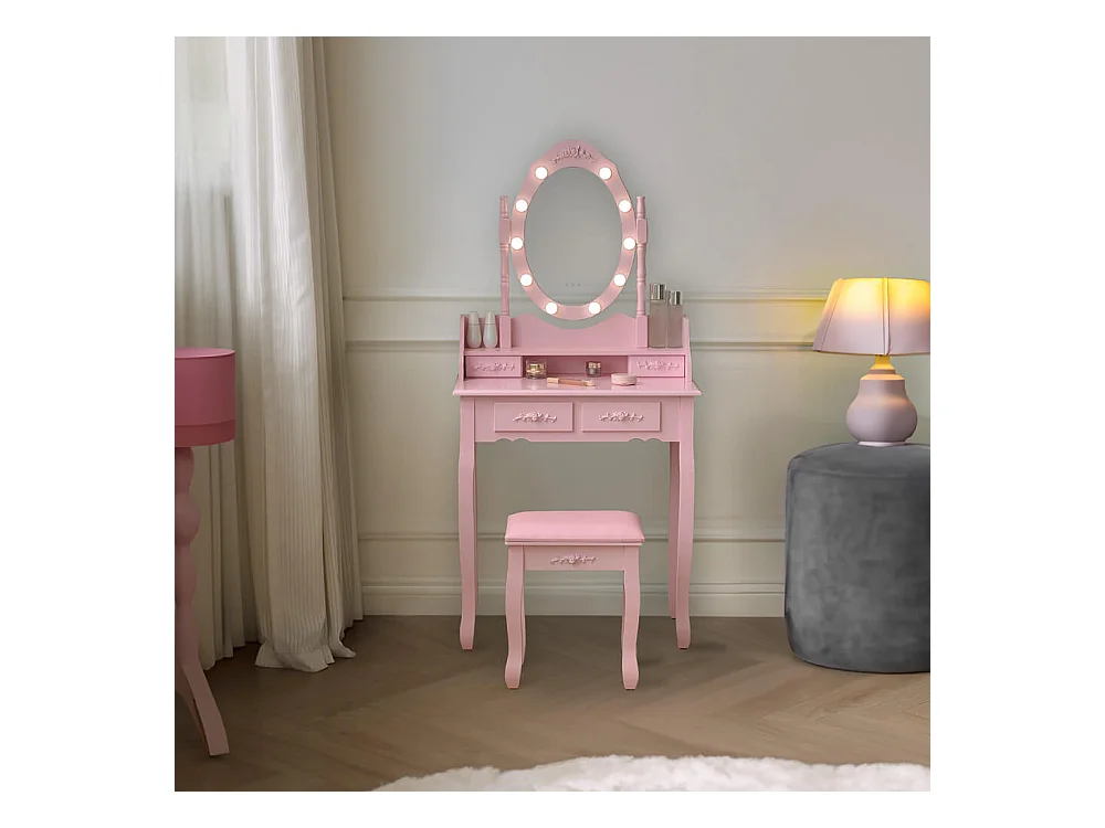Coiffeuse avec Tabouret pour Enfants de Style Princesse avec Miroir Pivotant à 360° Amovible et 3 Tiroirs Rose et Blanc
