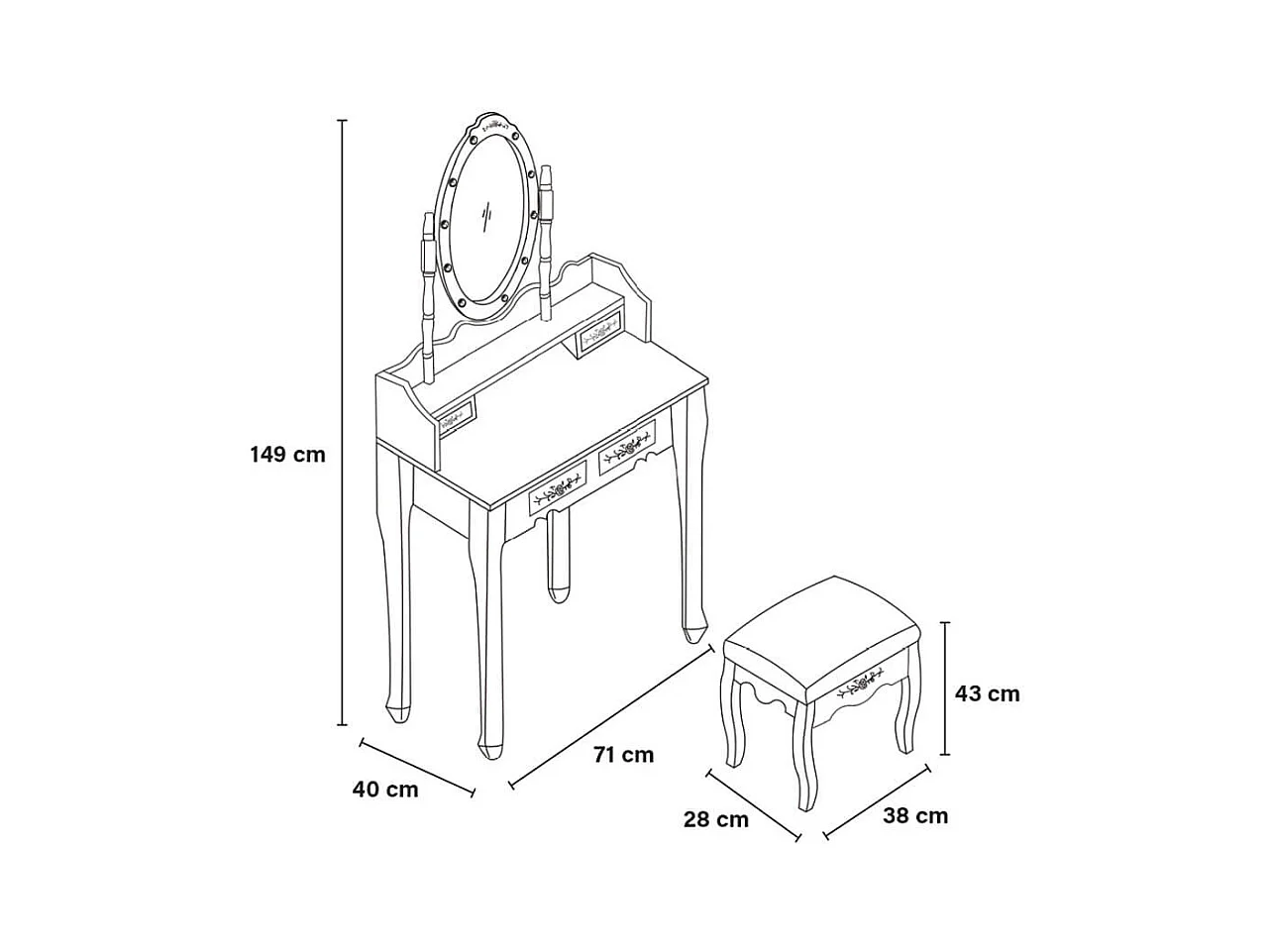Coiffeuse avec tabouret et 90 x 40 x 146 cm 02_0006327