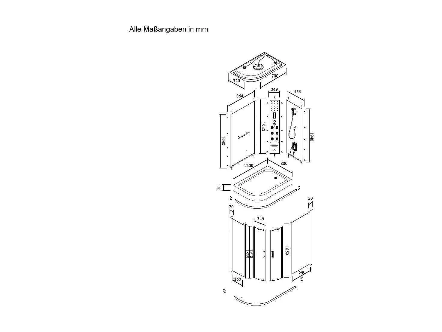 Home Deluxe Douche à vapeur BLACK PEARL 120 x 80 cm Gauche