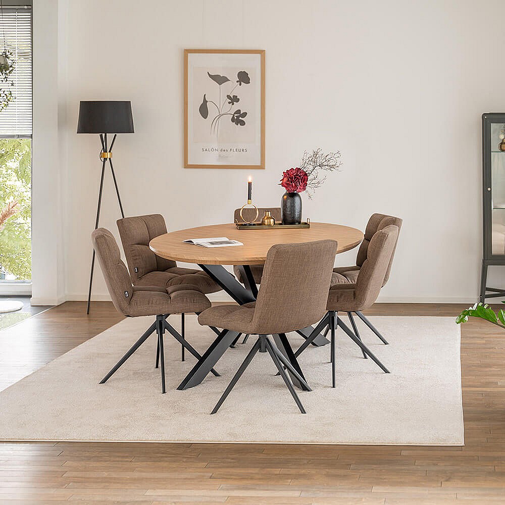 Home Deluxe Ensemble de salle à manger Ovale incl. pied étoile 200 x 120 cm Fishbone Oak