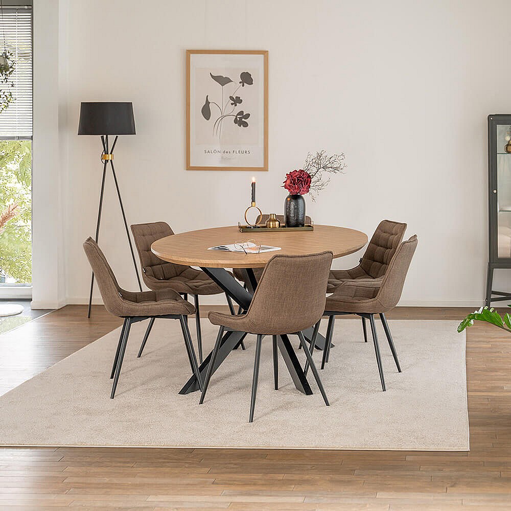 Home Deluxe Ensemble de salle à manger Ovale incl. pied étoile 200 x 120 cm Fishbone Oak