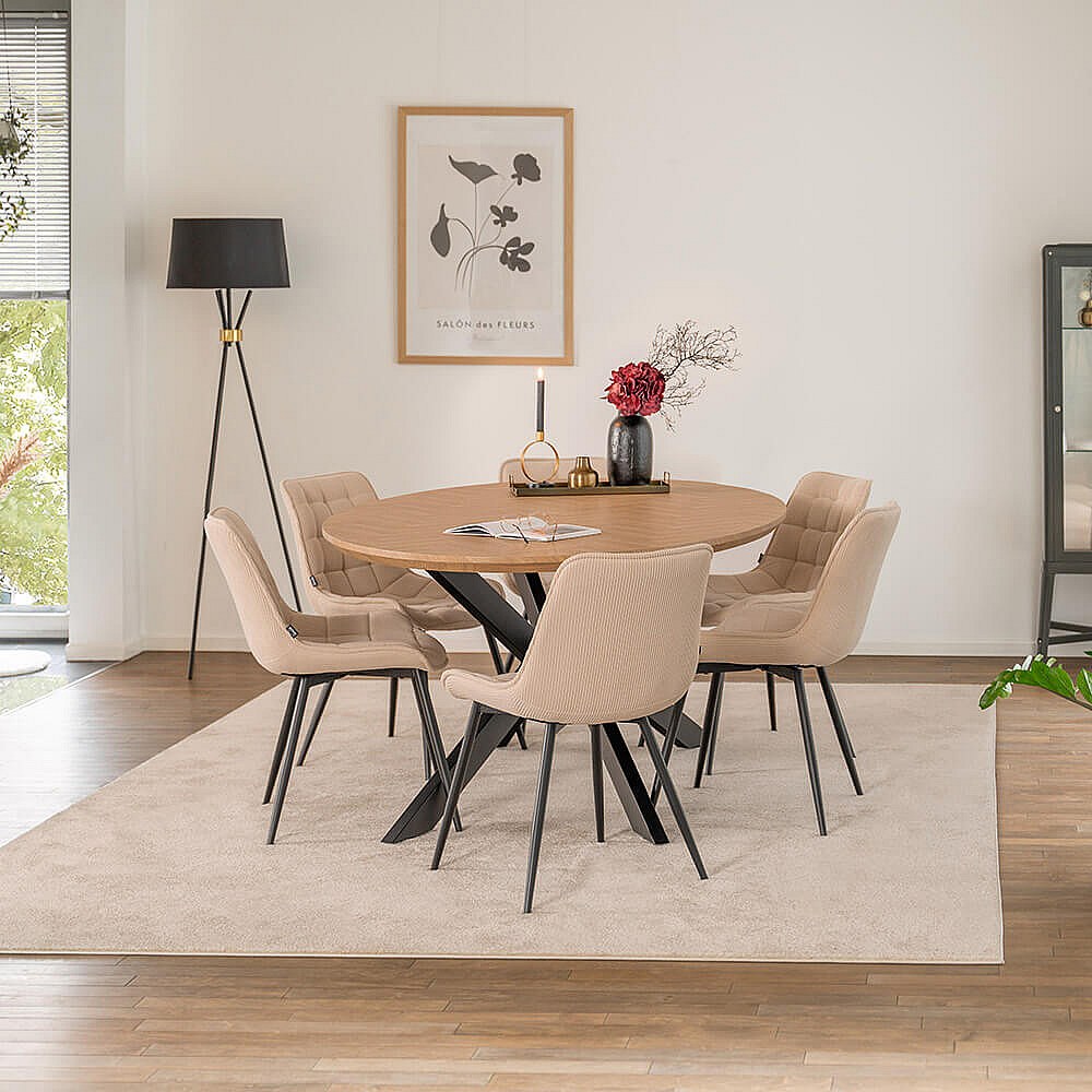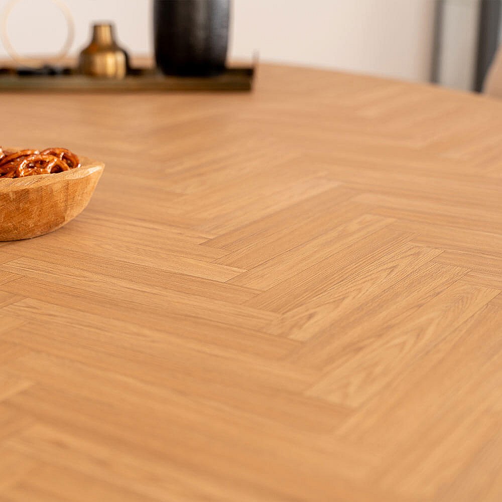 Home Deluxe Ensemble de salle à manger Ovale incl. pied étoile 200 x 120 cm Fishbone Oak