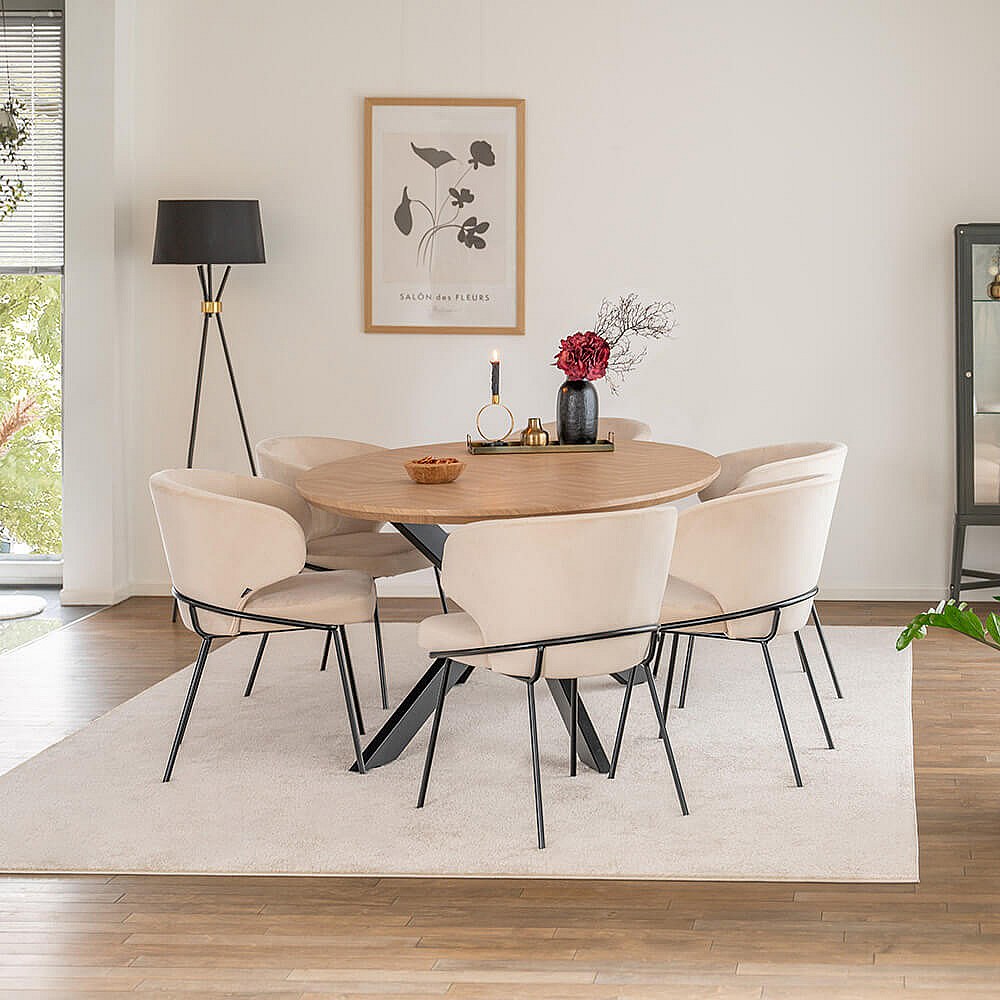 Home Deluxe Ensemble de salle à manger Ovale incl. pied étoile 200 x 120 cm Fishbone Oak