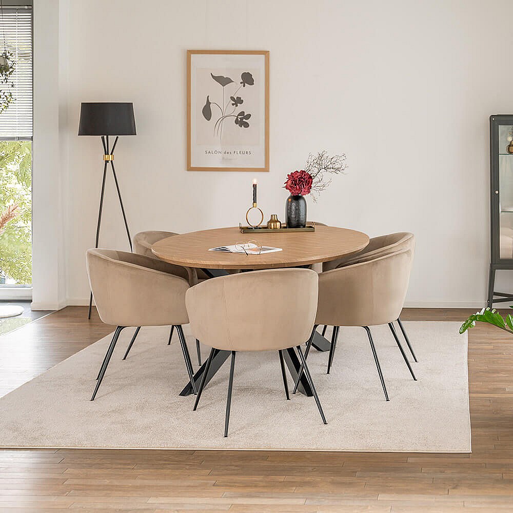Home Deluxe Ensemble de salle à manger Ovale incl. pied étoile 200 x 120 cm Fishbone Oak