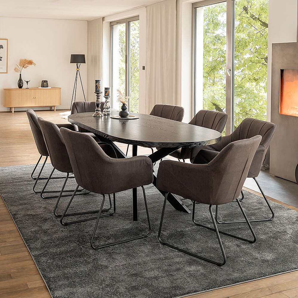 Home Deluxe Salle à manger Ovale Extensible incl. pied étoile 160 x 100 cm Dark Oak