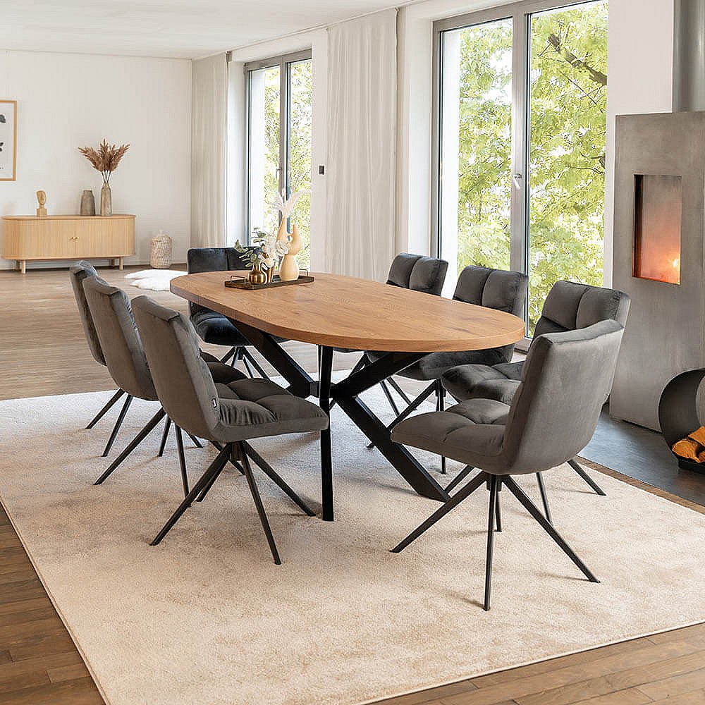 Home Deluxe Salle à manger Ovale Extensible incl. pied étoile 160 x 100 cm Light Oak