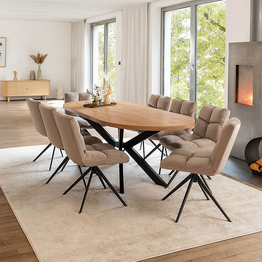 Home Deluxe Salle à manger Ovale Extensible incl. pied étoile 160 x 100 cm Light Oak
