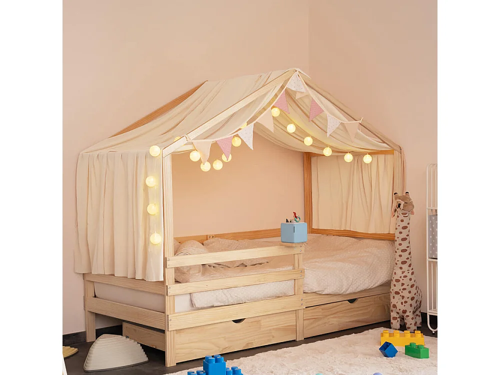 HOME DELUXE - Lit enfant Wolkenland avec tiroirs - 90 x 200 cm, couleur : naturel, bois de pin, avec protection antichute et support Toniebox