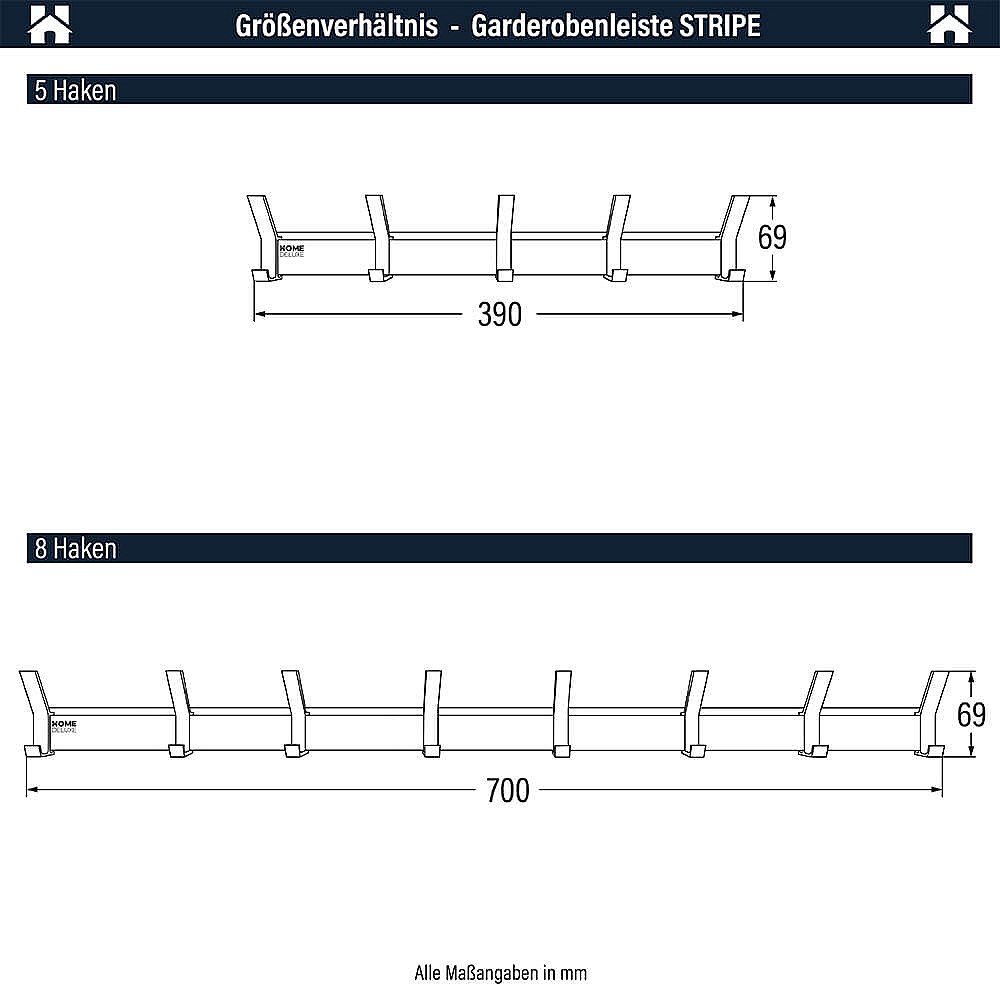 Porte-manteau HOME DELUXE STRIPE comprenant crochets, aimants et étagère à photos - 8 x crochets | Portemanteau mural, porte-crochets