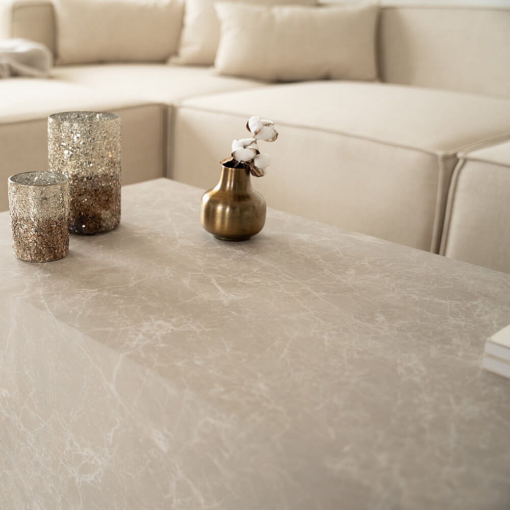 Home Deluxe - Table basse en marbre AMIRI L | Couleur : beige, Dimension : 95 x 40 x 50 cm
