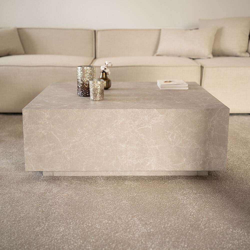 Home Deluxe - Table basse en marbre AMIRI XL | Couleur : beige, Dimension : 95 x 35 x 95 cm