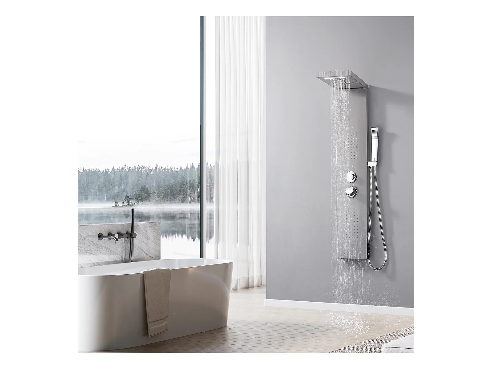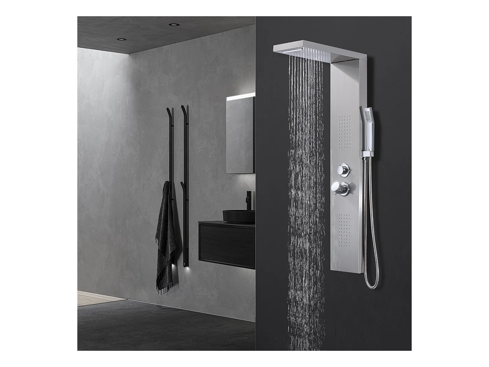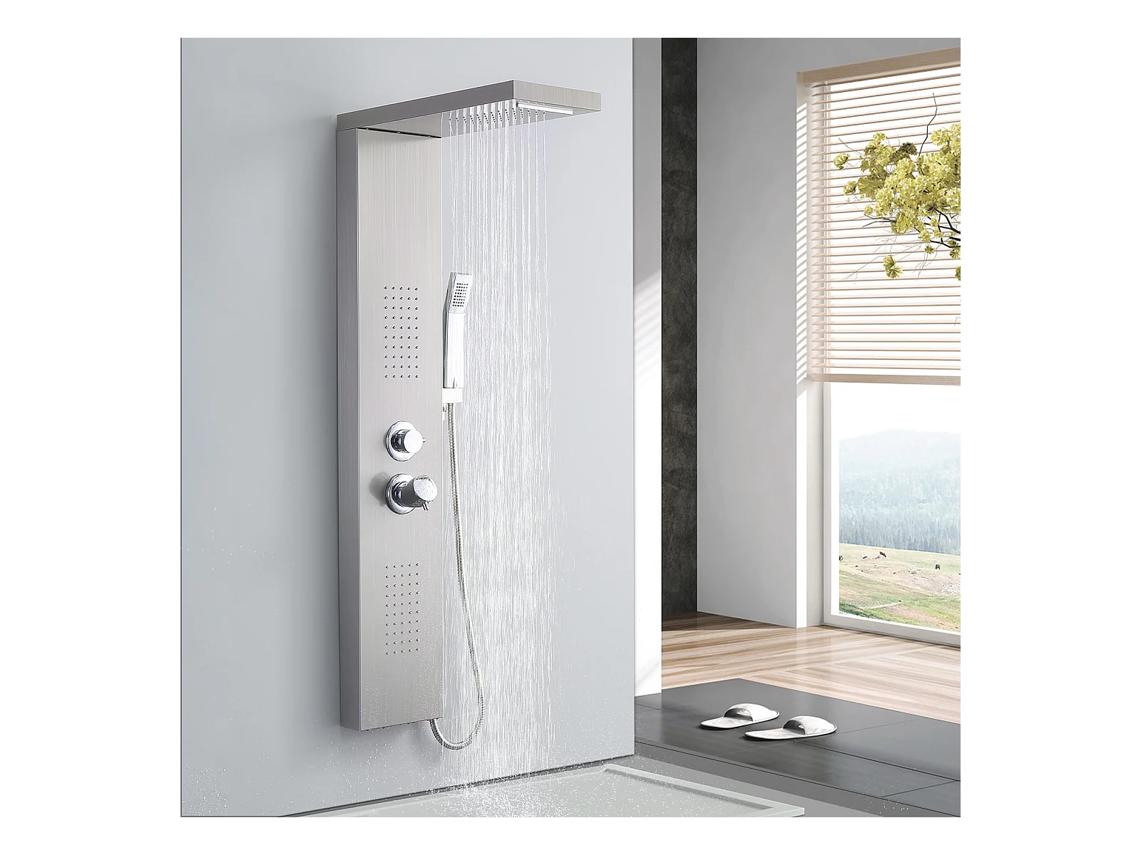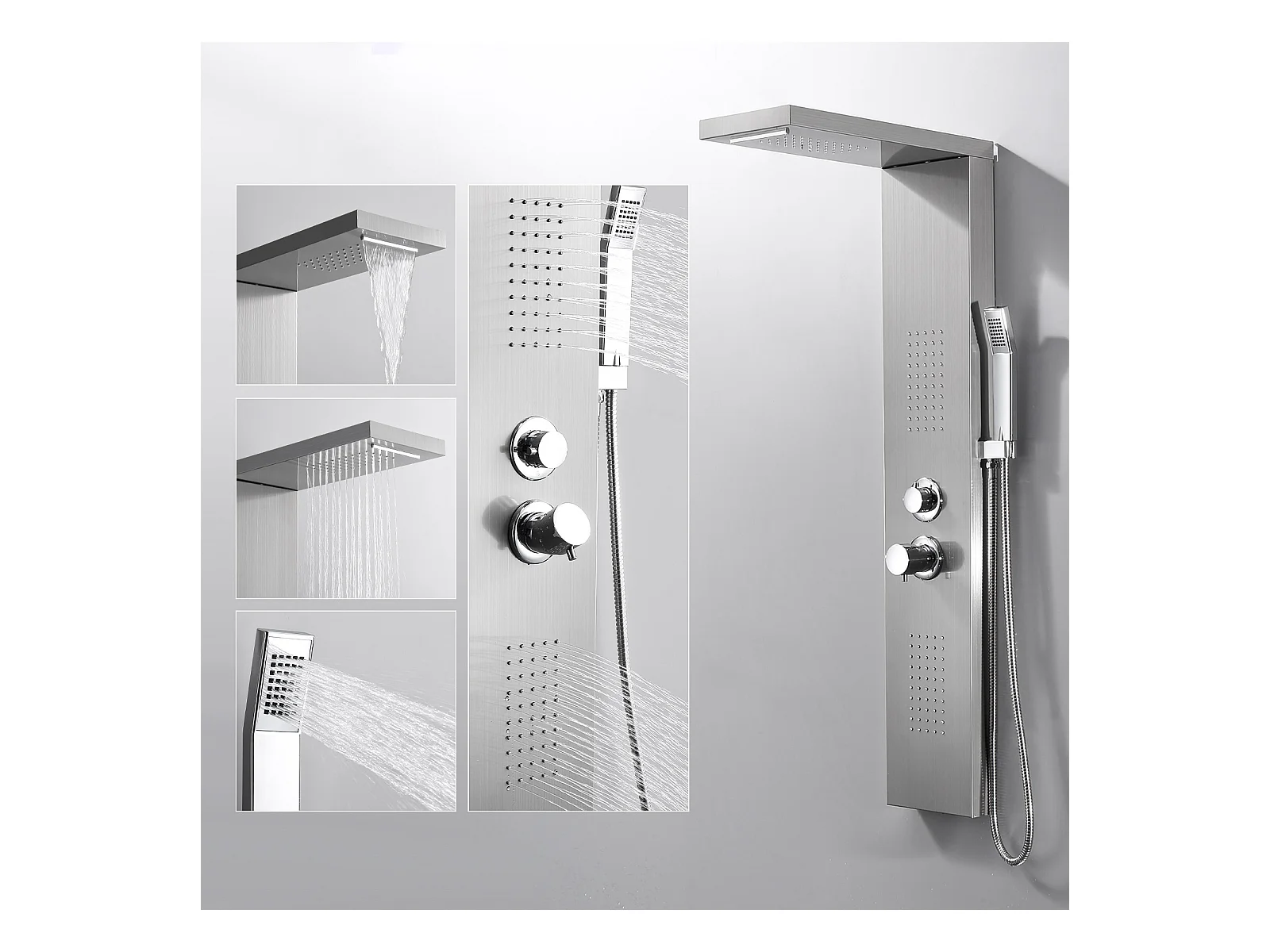Homelody Colonne de Douche Hydromassante, Panneau de Douche Multifonction en Acier Inox a Montage Mural , chromé