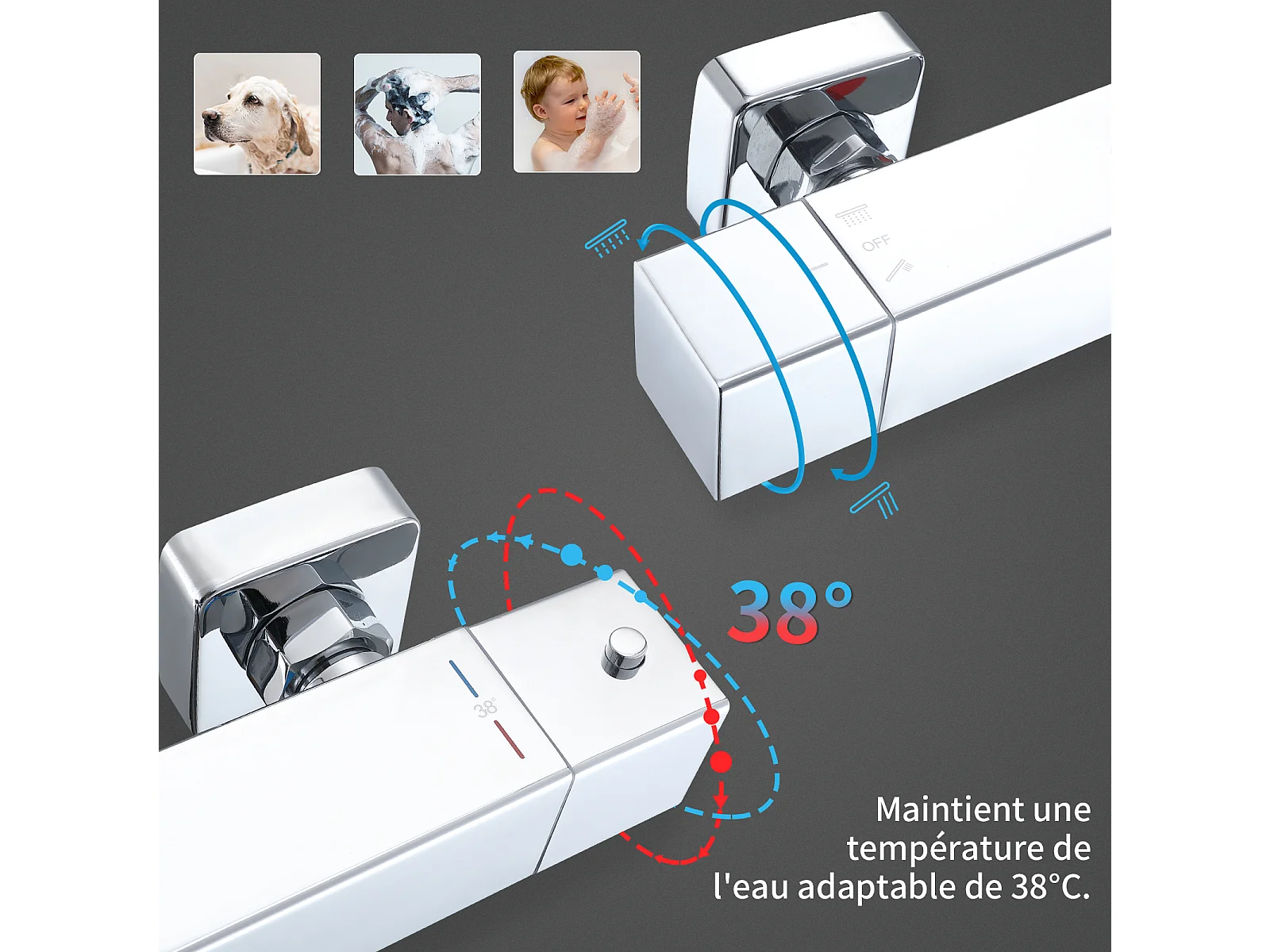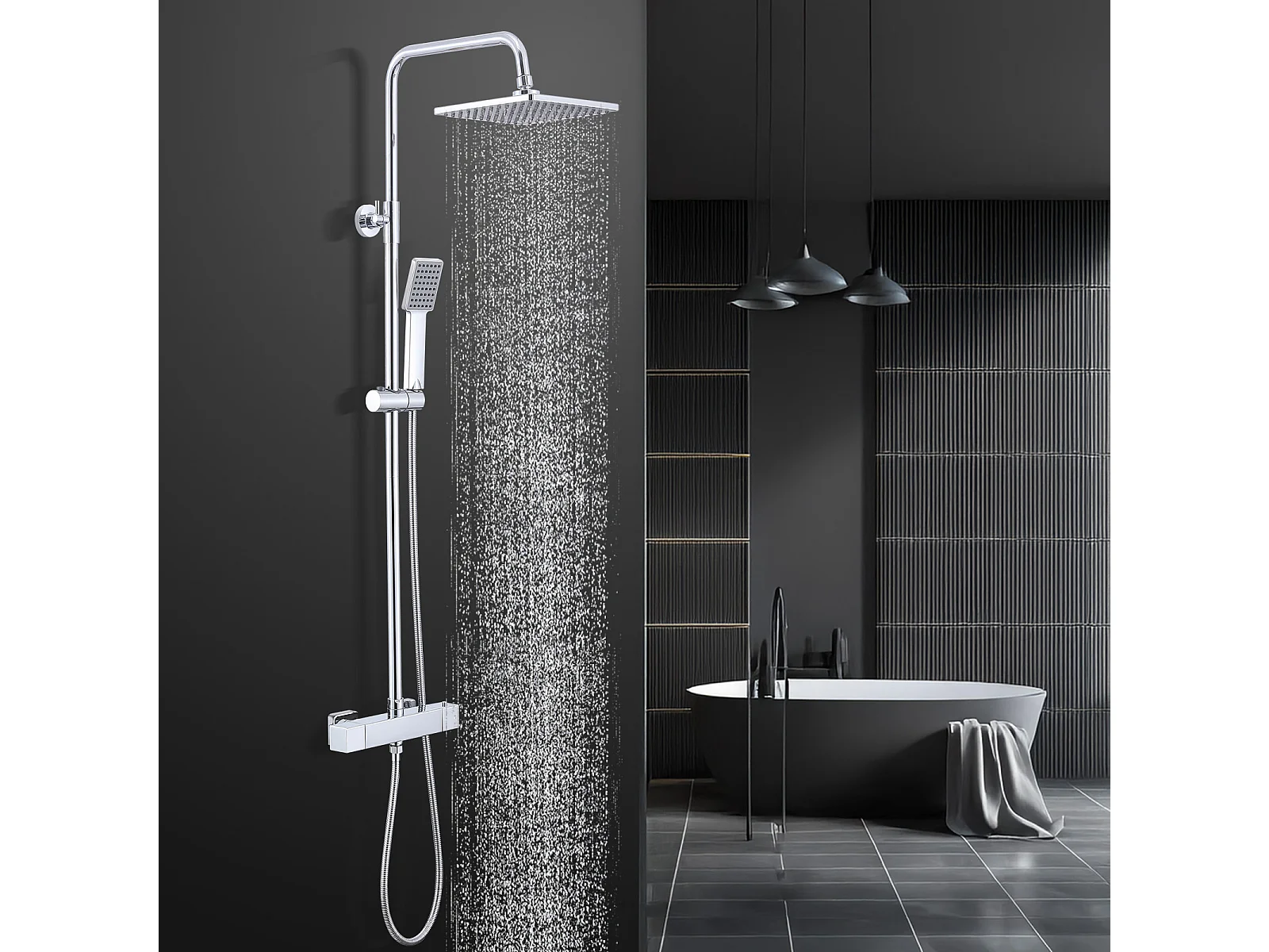 Homelody Colonne de Douche Thermostatique 2 Fonctions, Ensemble de Douche Thermostat avec Douchette, Hauteur Réglable