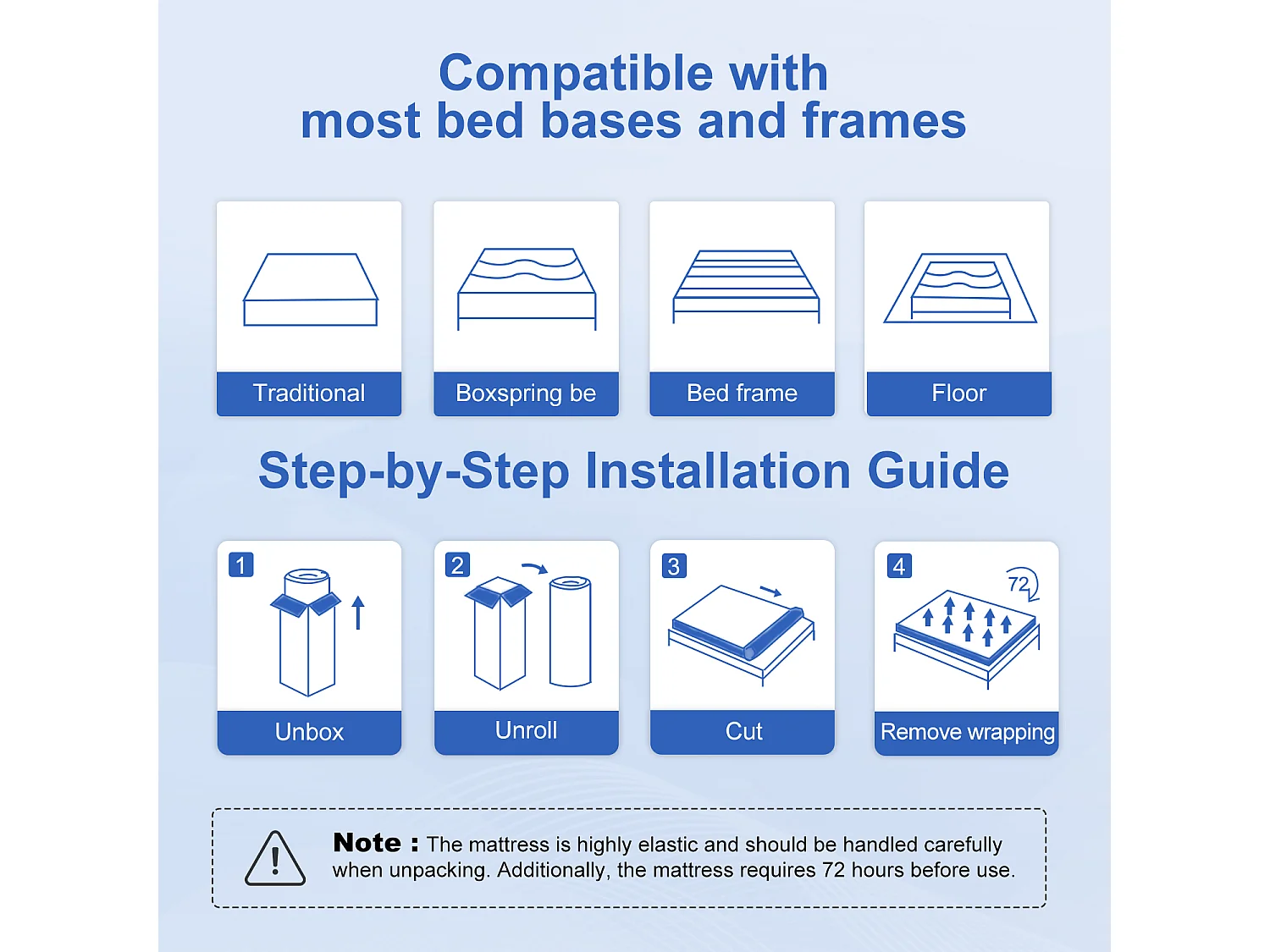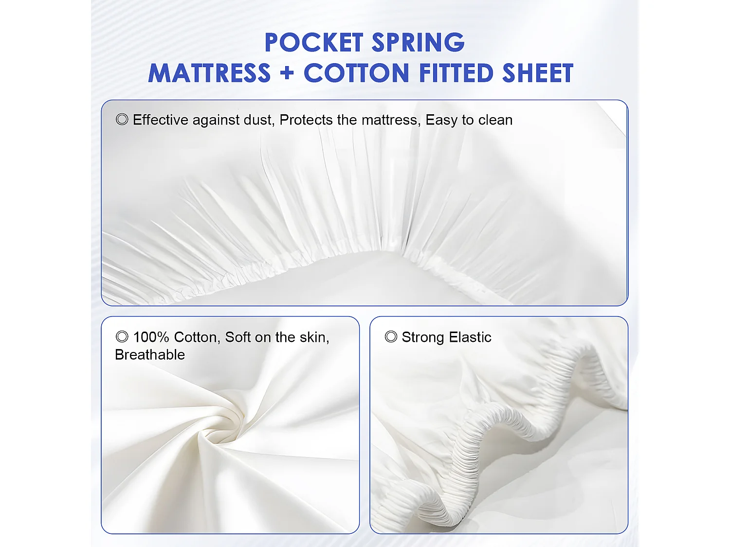 Matelas 140 x 200 cm ressorts,ensachés ép.22 cm, ergonomique 7 zones, avec housse, mousse mémoire, anti-acariens et antibactérien