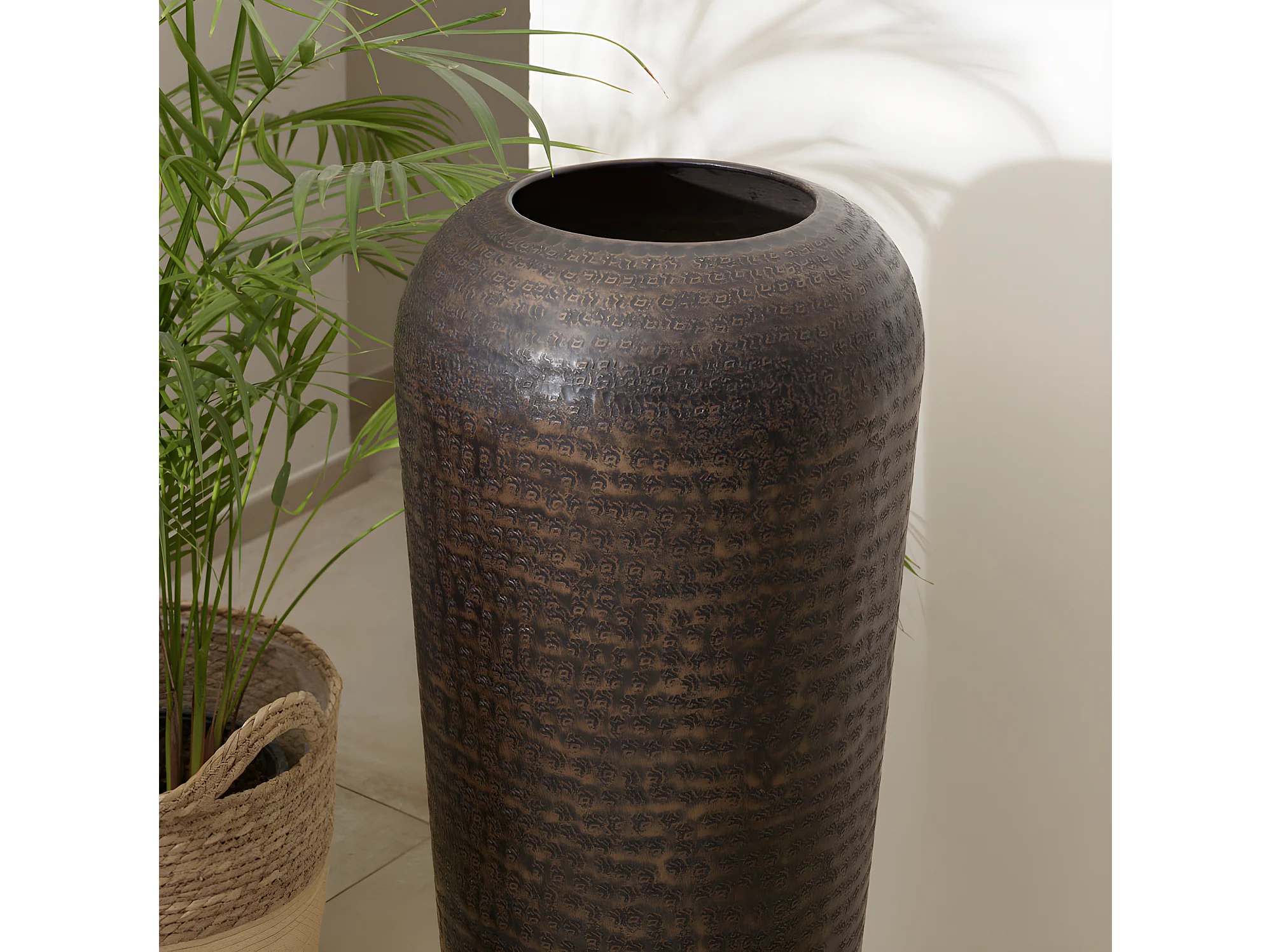 HONORE - Vase alu L30cm H85cm couleur cuivre noir antique avec gravures