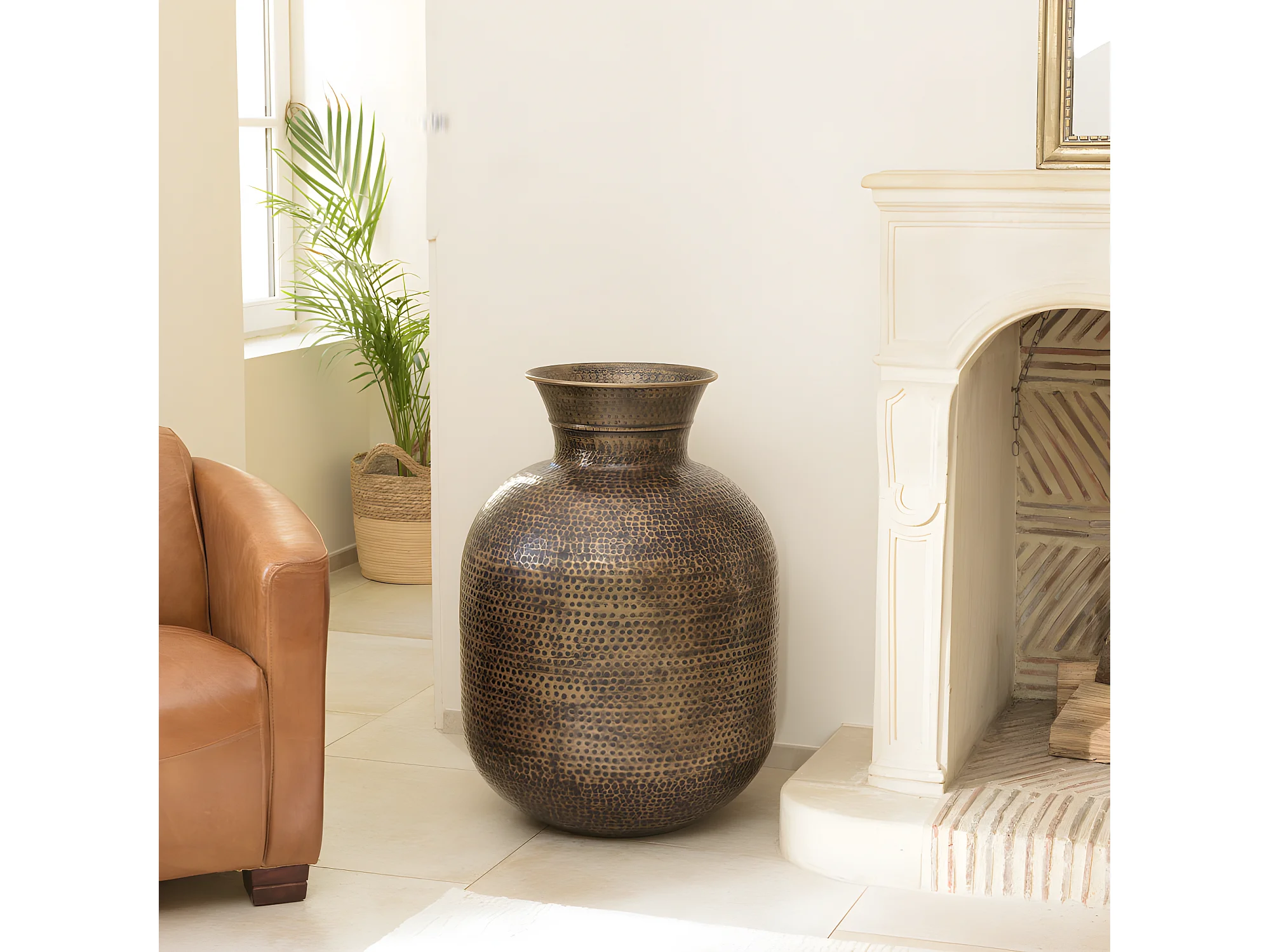 HONORE - Vase alu L53cm H75cm couleur laiton noir antique effet martelé