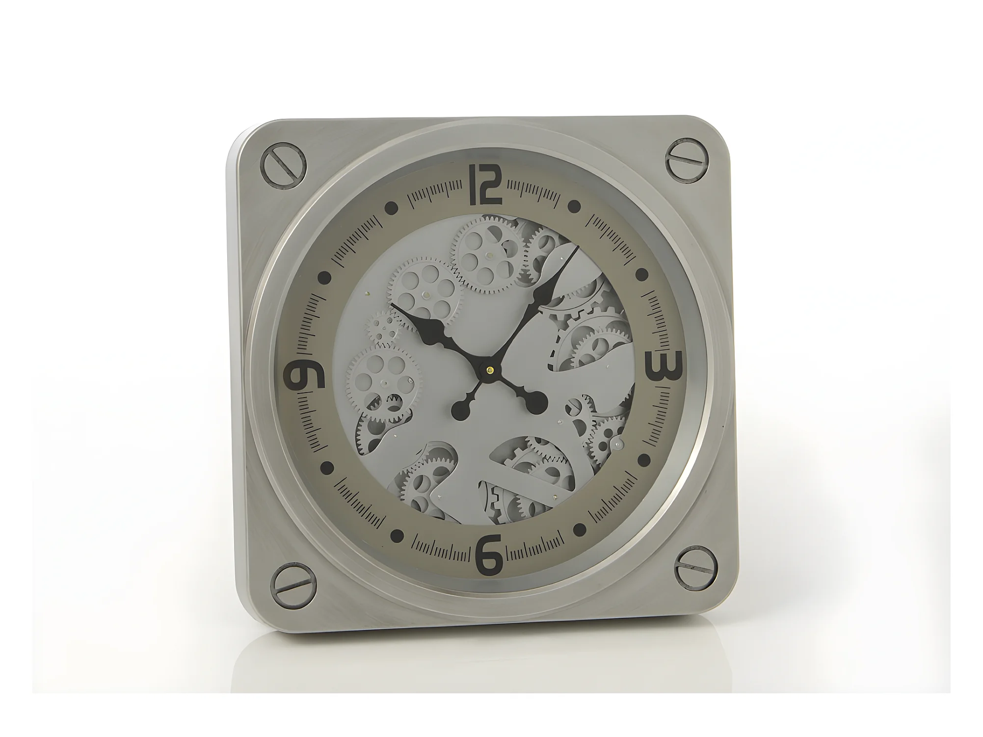 Pendule murale en Métal gris avec mécanisme apparent 80 x 80 cm