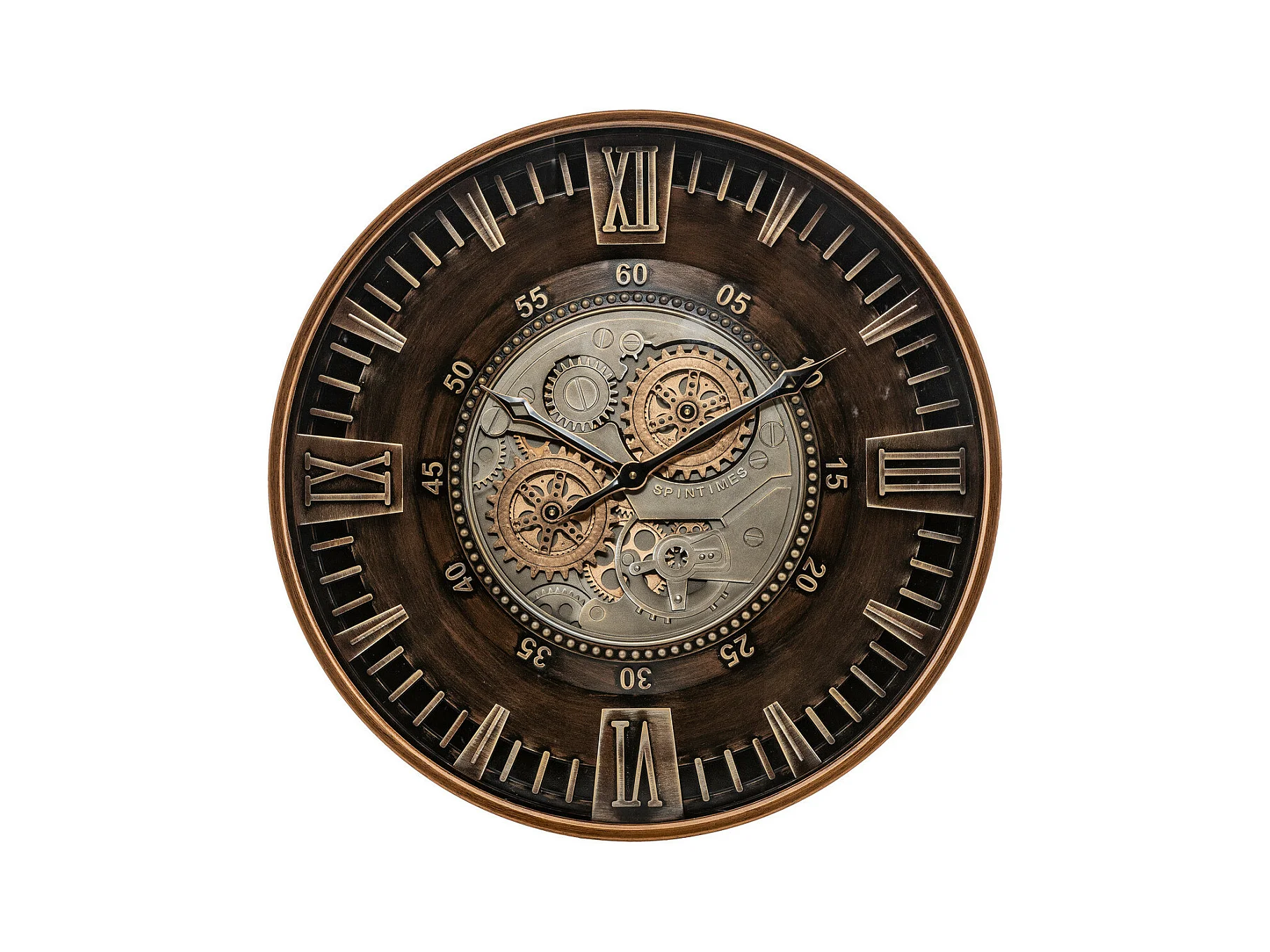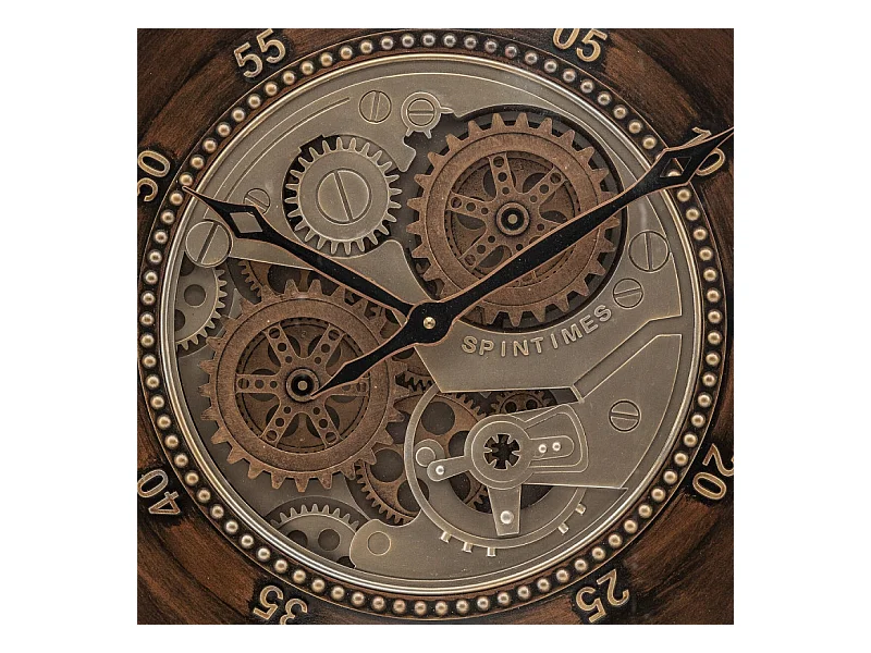 Pendule murale Marron style industriel avec rouages mobiles D 59 cm