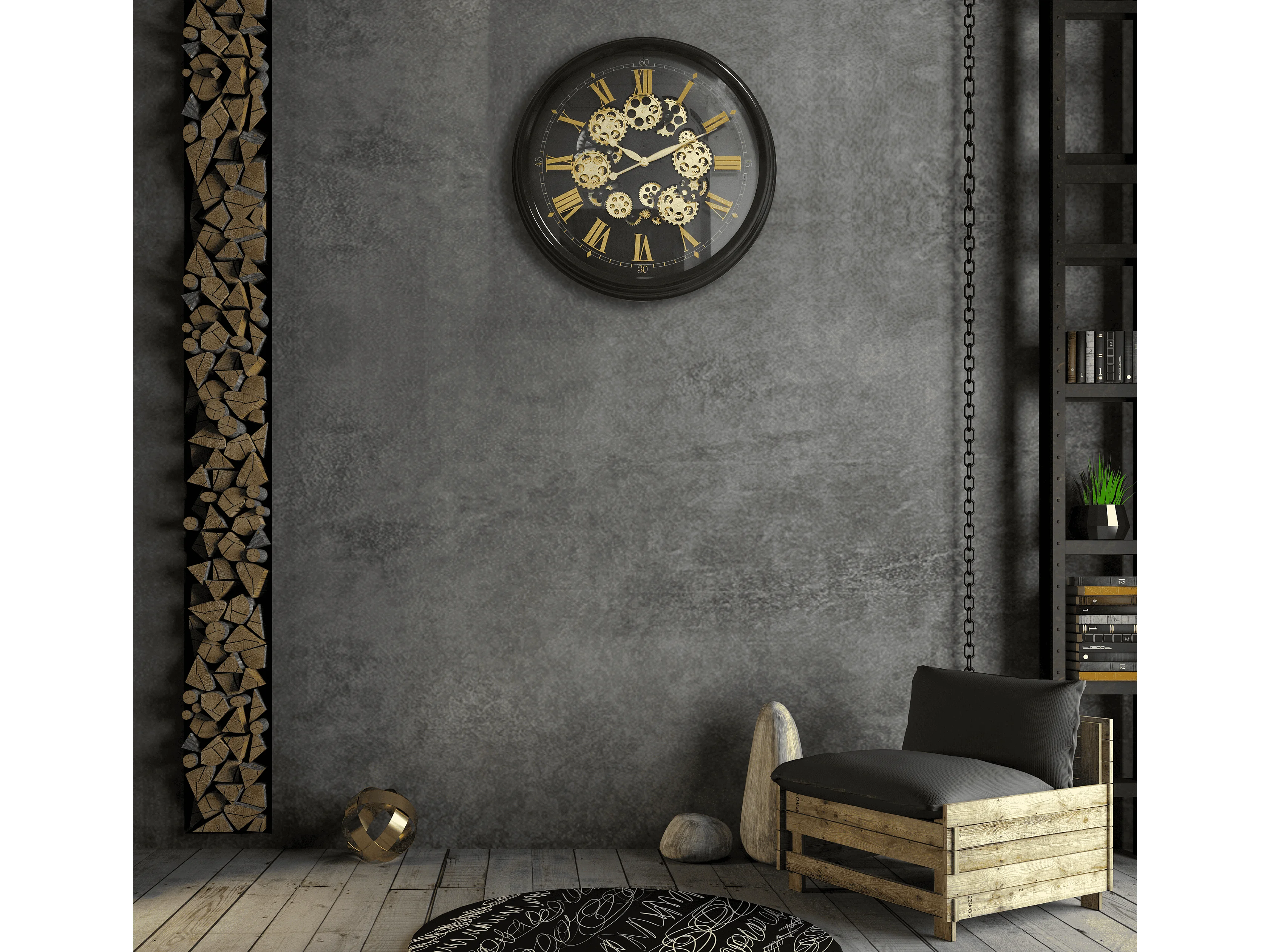 Horloge mécanismes noir et doré 80cm