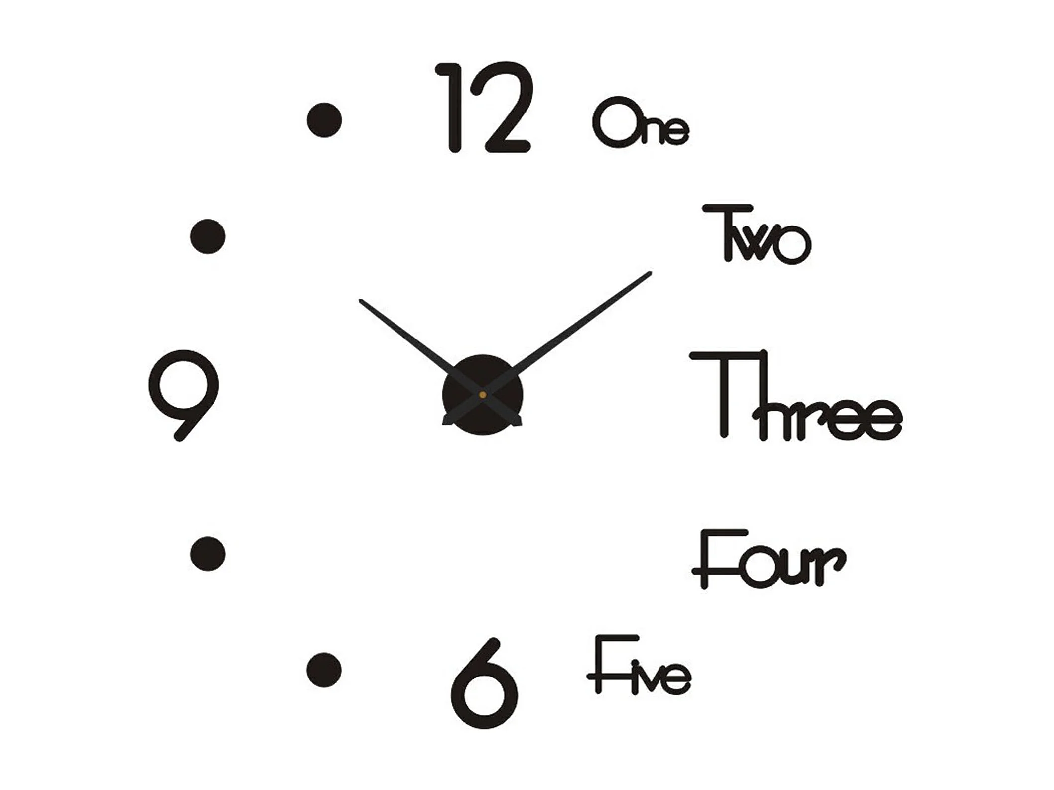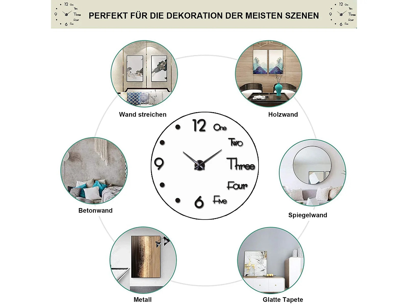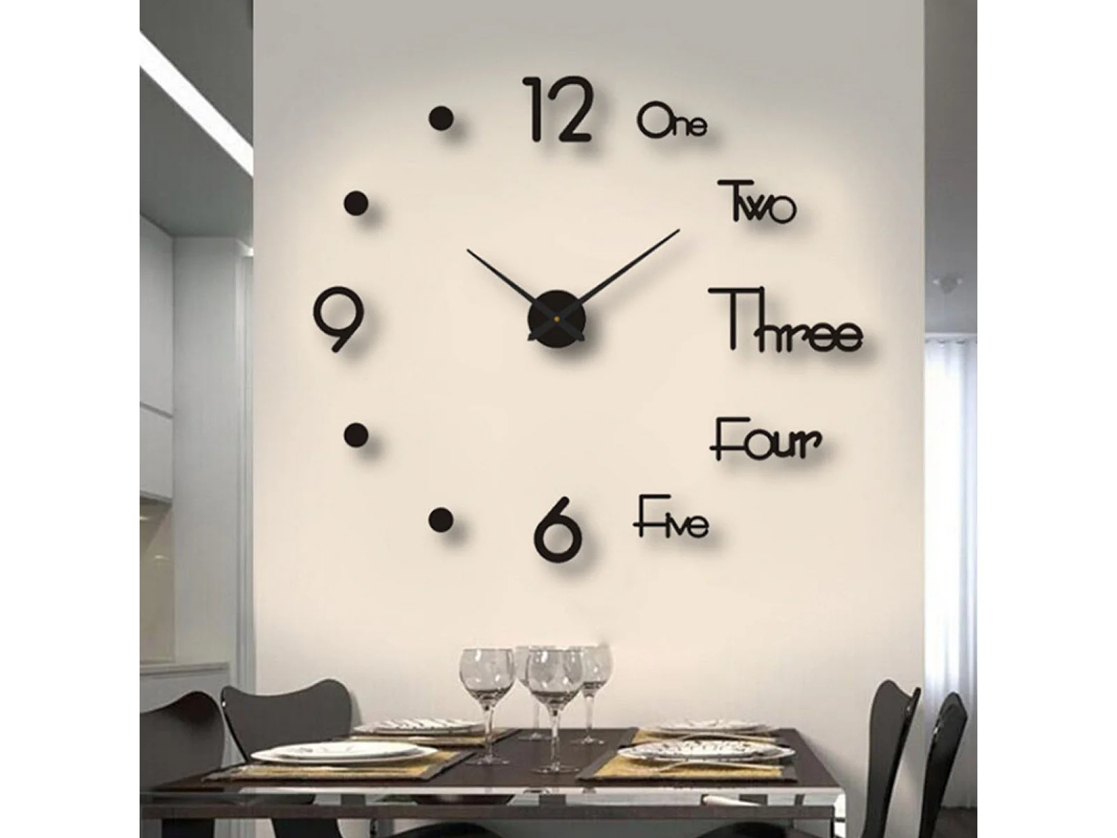 Horloge Murale 3D Moderne Silencieuse, Design Autocollant, Noir