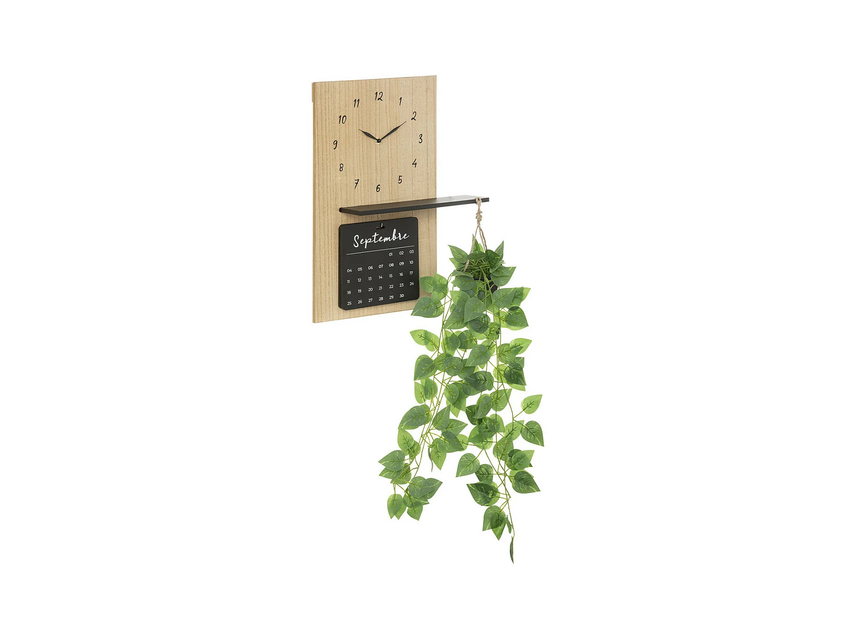 Horloge murale avec calendrier et étagère plante H 60 cm