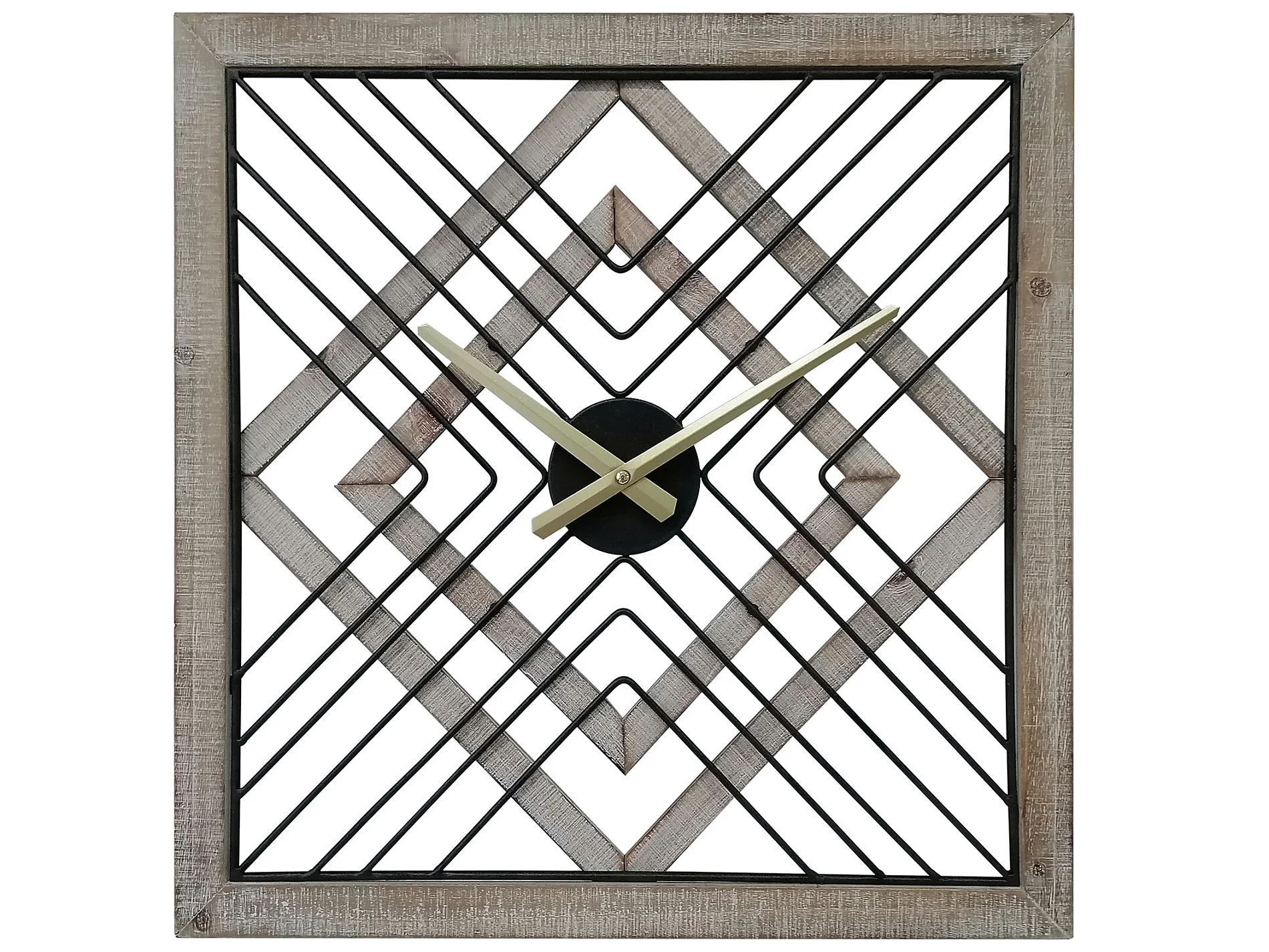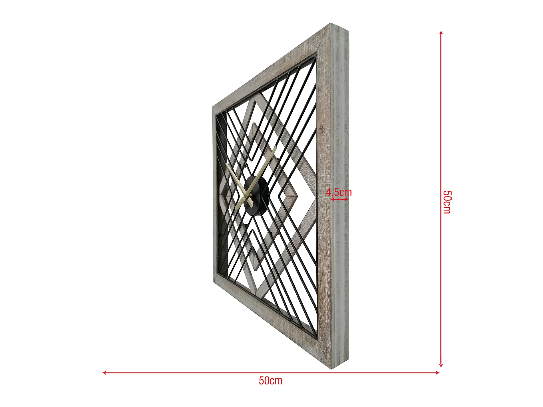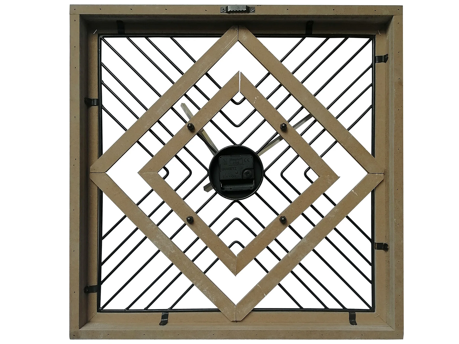 Horloge Murale Carrée en Métal Mdf Noir Brun Style Moderne
