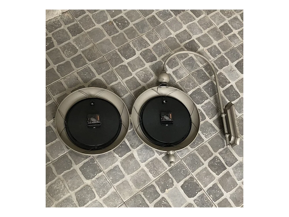 Horloge murale décorative double face vintage gare métal taupe 57cm