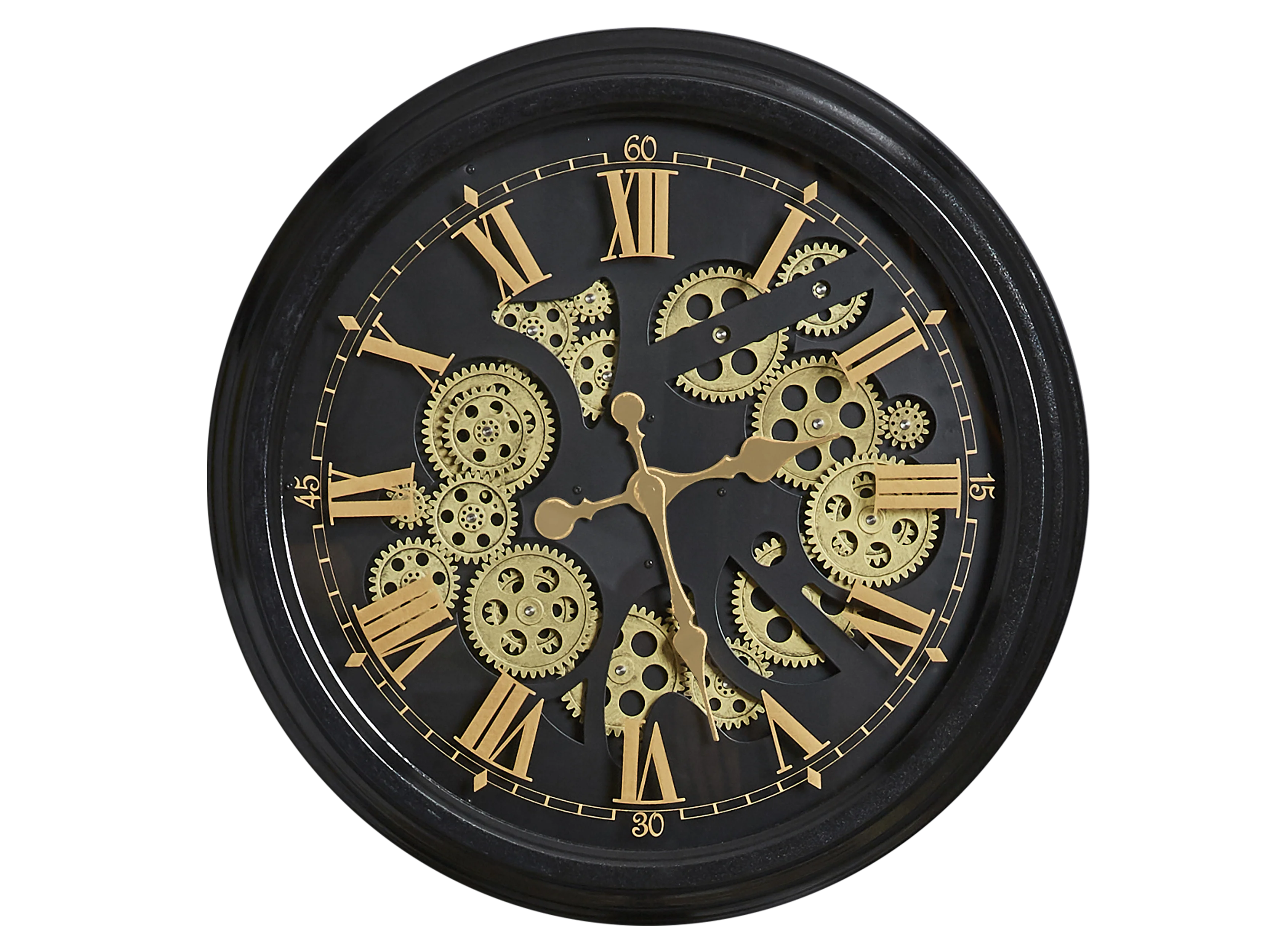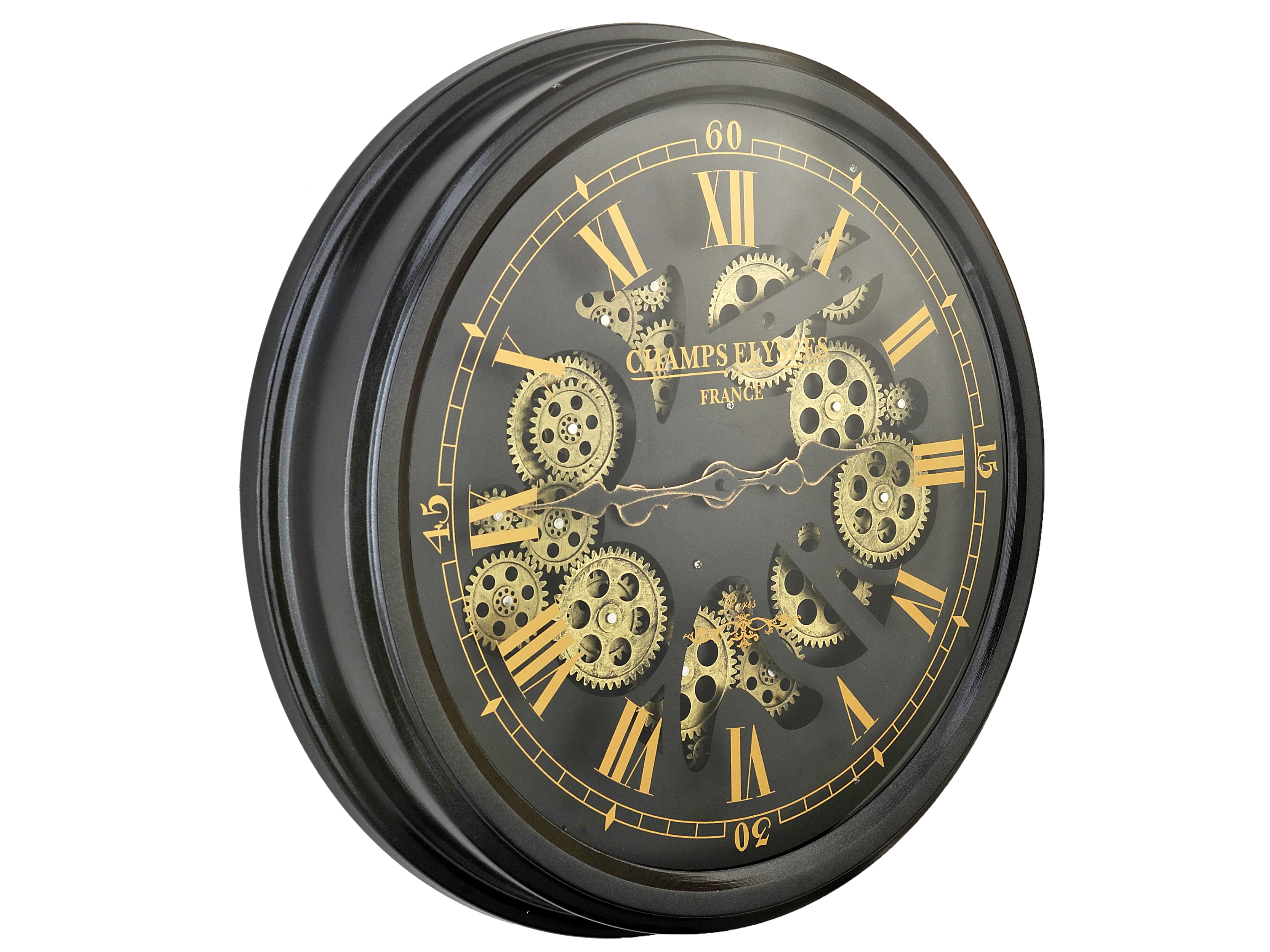 Horloge ronde noire et dorée mécanisme apparent 52x9x52cm