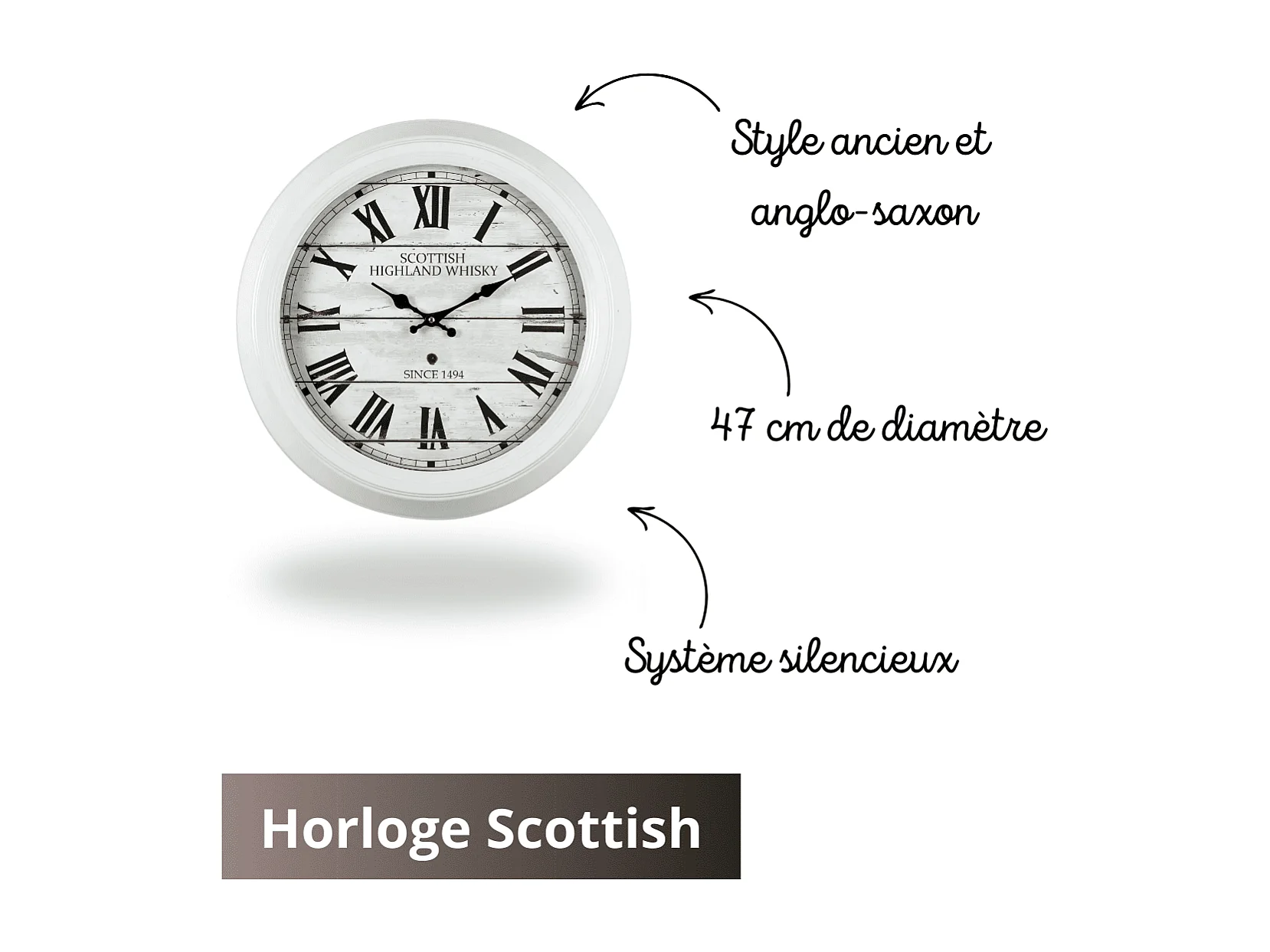 Horloge Scottish blanc 47 cm