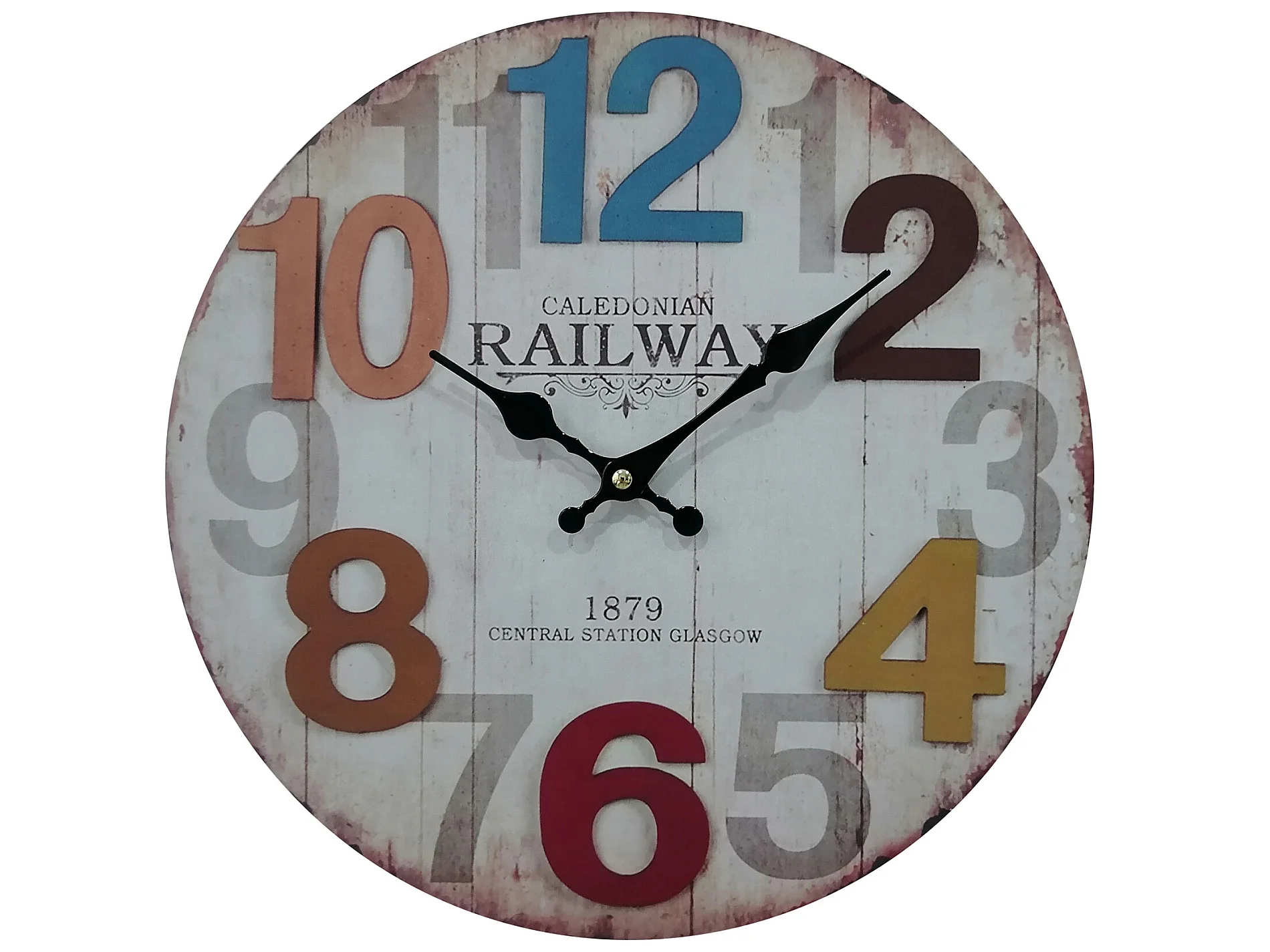 Horloge Suspendue Blanc Chiffres Colorés Mdf pour Salon Cuisine