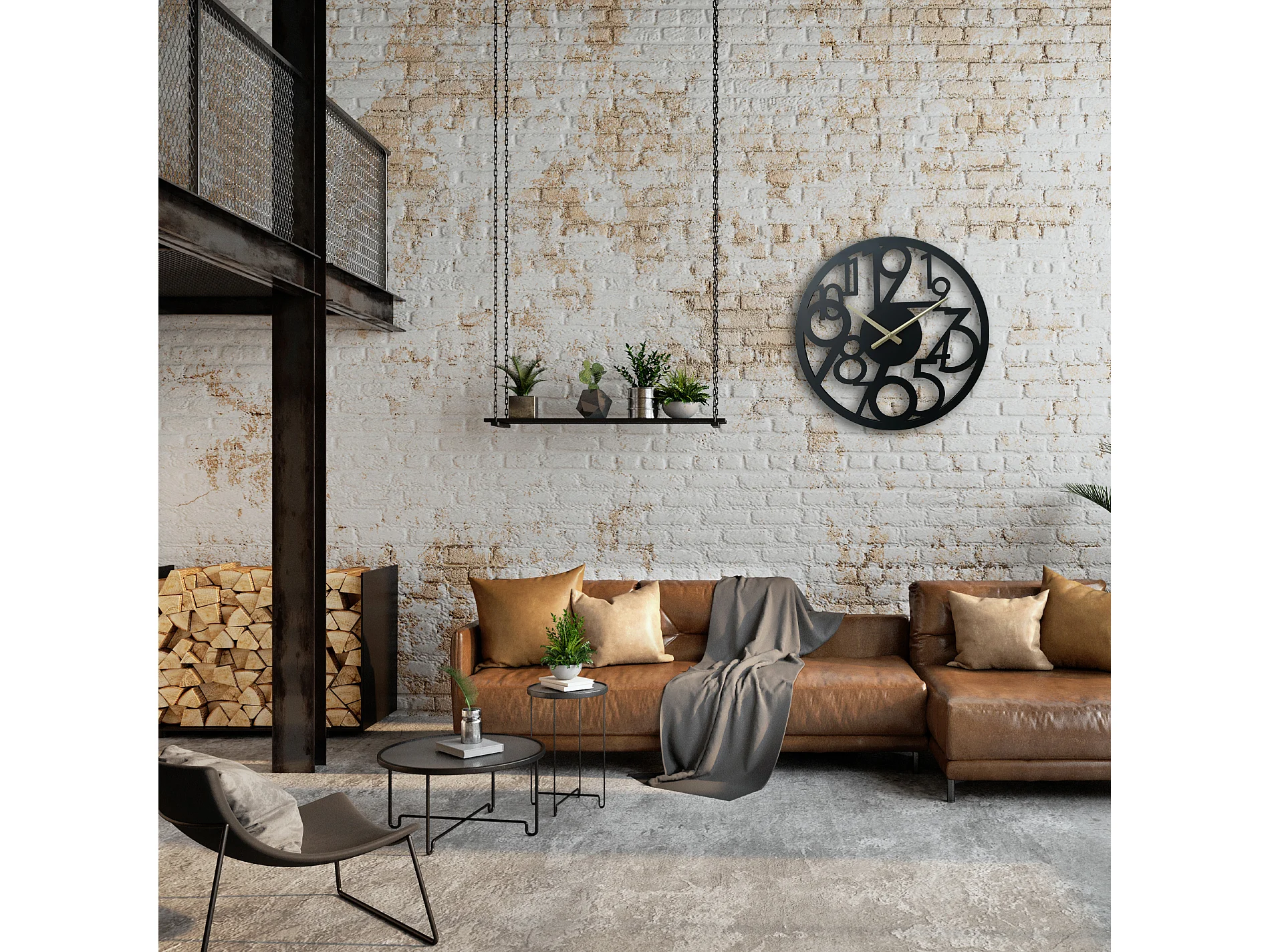 Horloge Suspendue Horloges Modernes en Métal Noir Grands Chiffres
