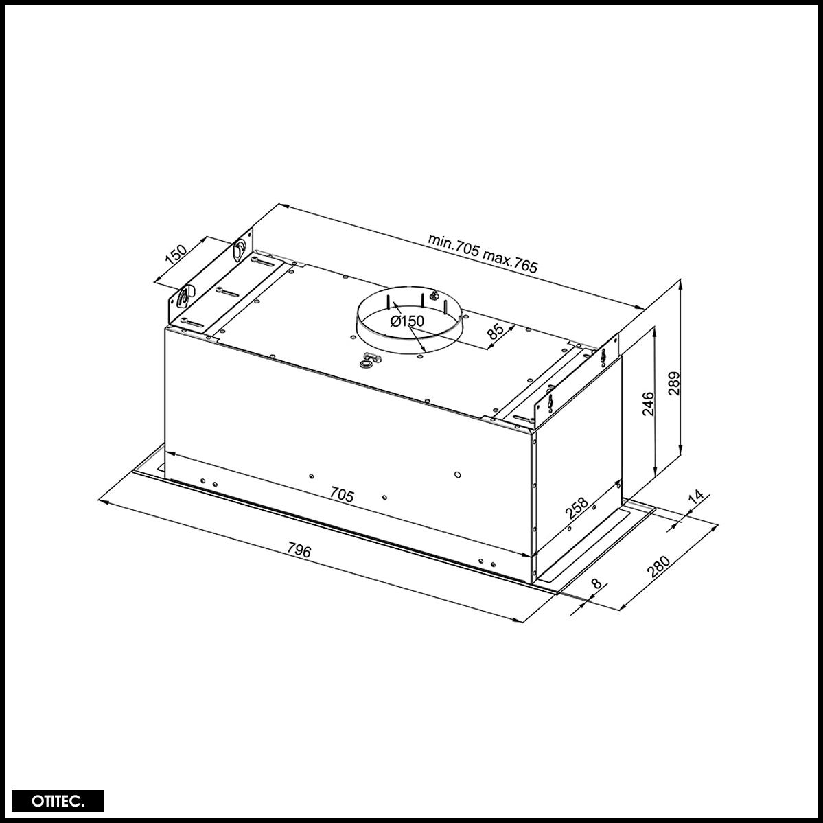 Hotte Casquette Aspirante Silencieuse - 80 cm - 565 m3/h - AGENDERO - Inox