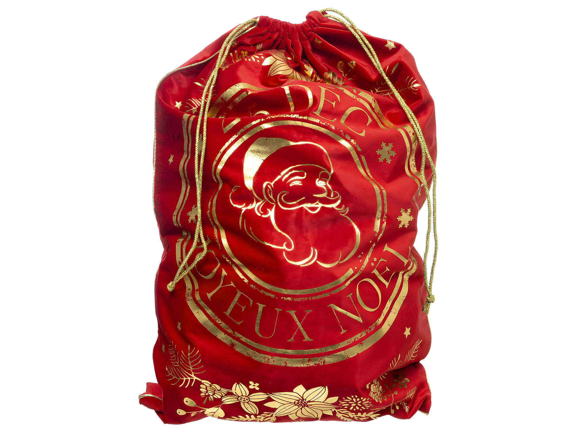 Hotte de Noël Imprimée "Vintage" 70cm Rouge & Or